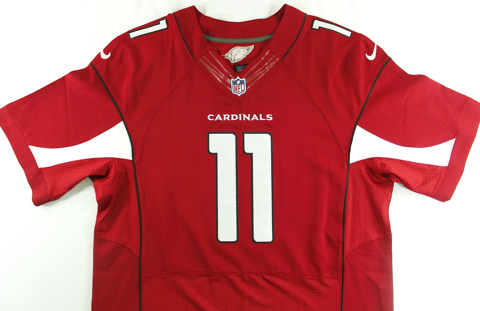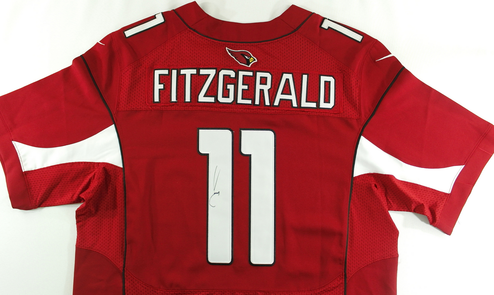 Nike on-field style jersey. Everything sewn on, size 48. Hand-signed in black felt-tip pen by Larry Fitzgerald. The autograph has slightly faded. The autograph includes an LOA and lifetime authenticity guarantee from Pristine Auction.