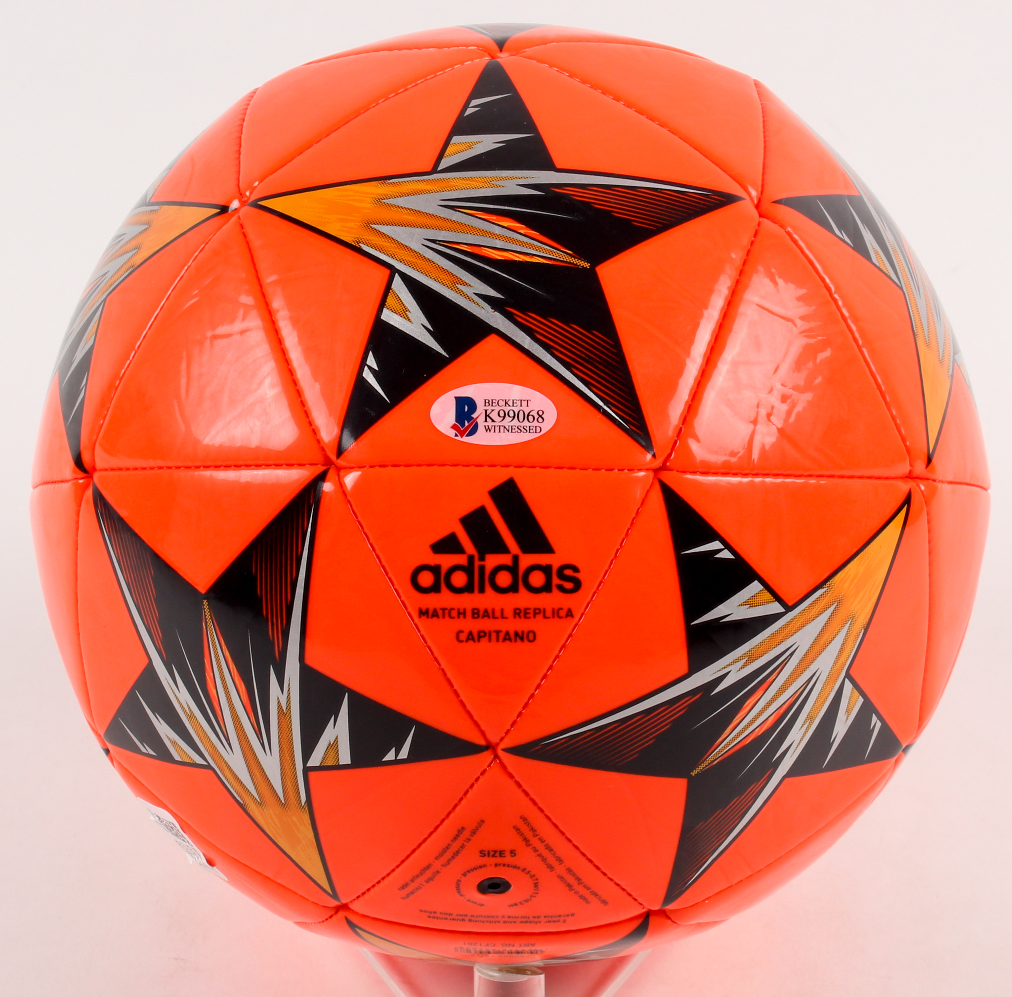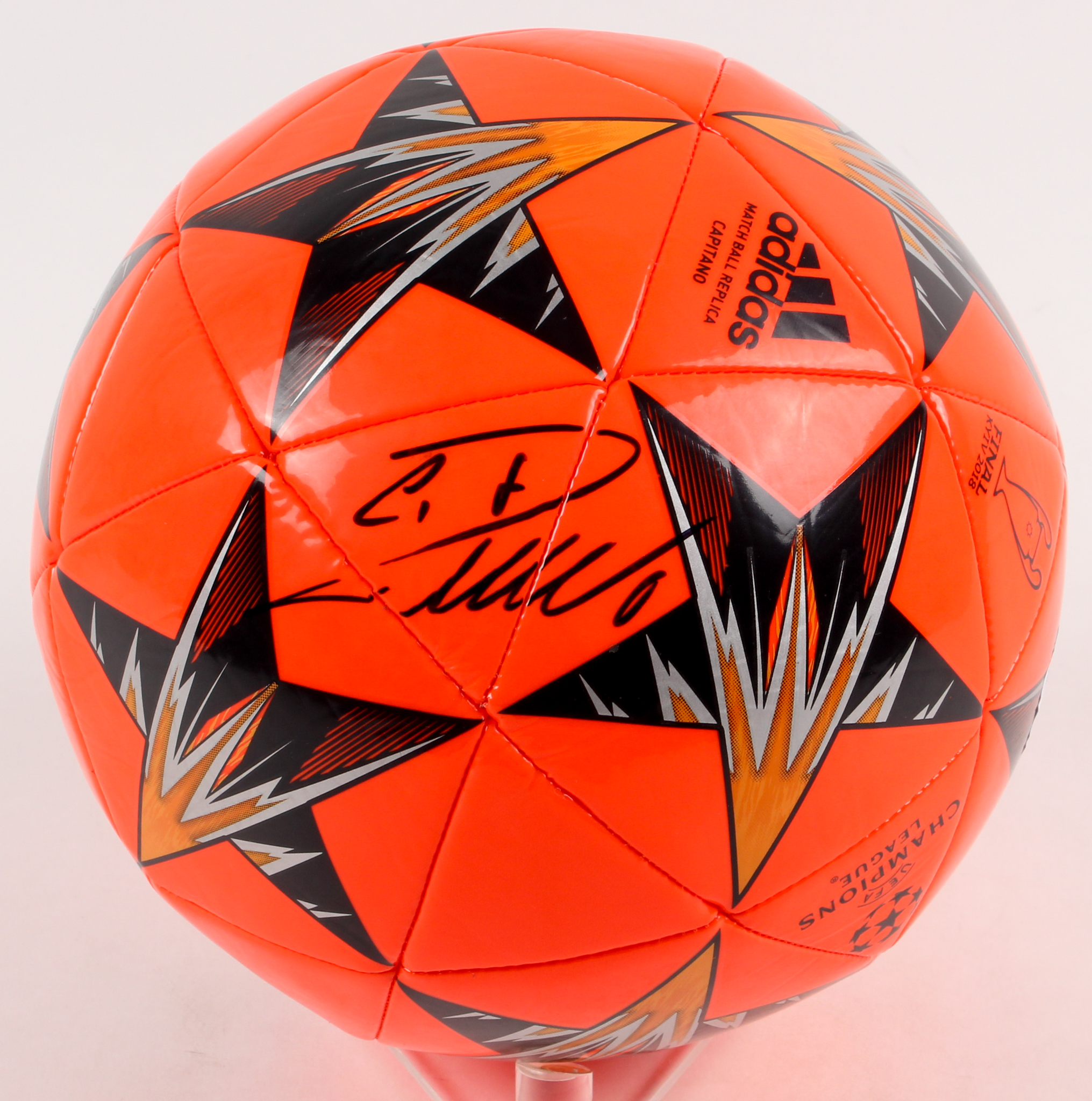 Adidas 2018 Champions League Final soccer ball. Hand-signed in black felt-tip pen by Cristiano Ronaldo.