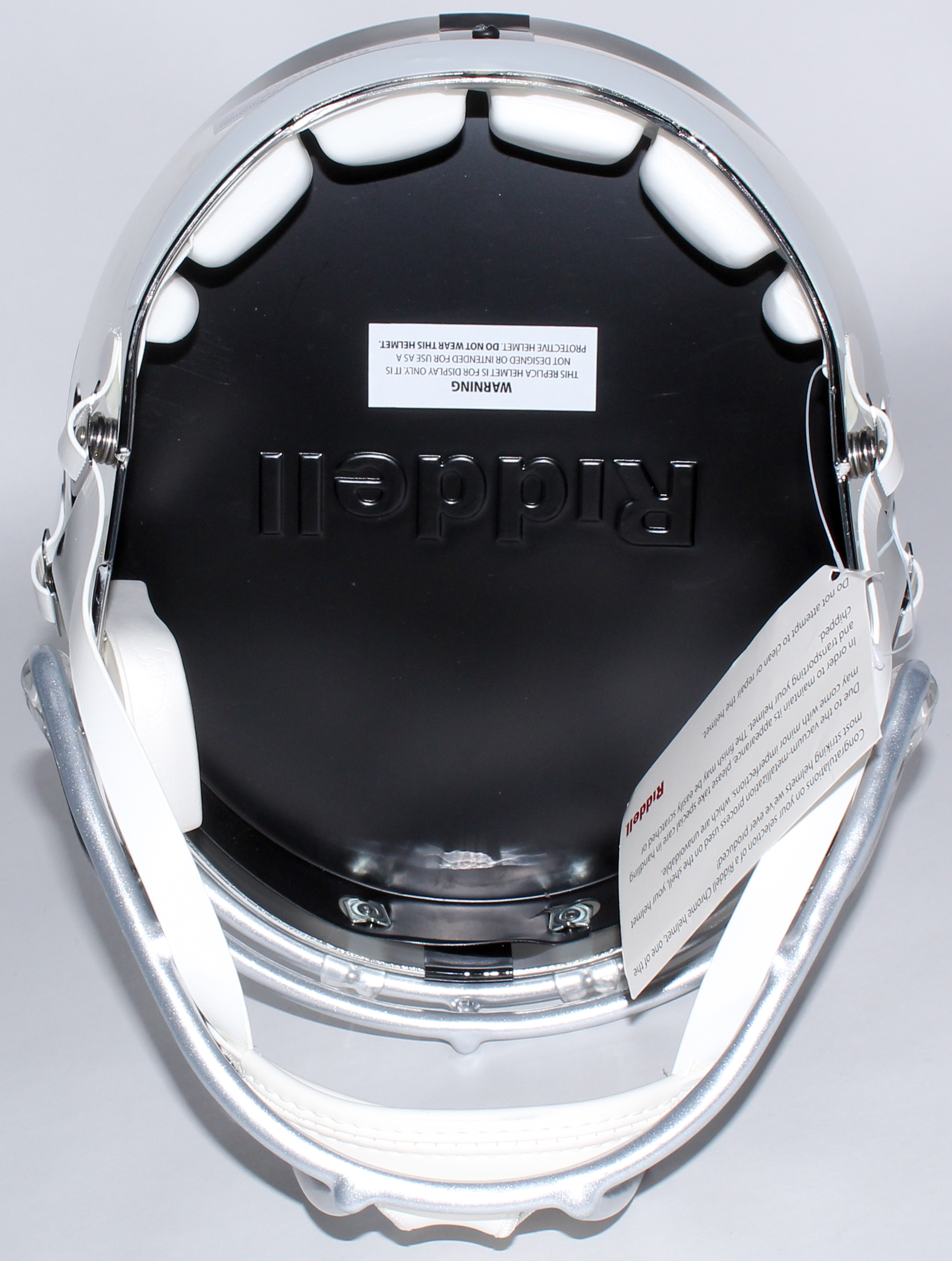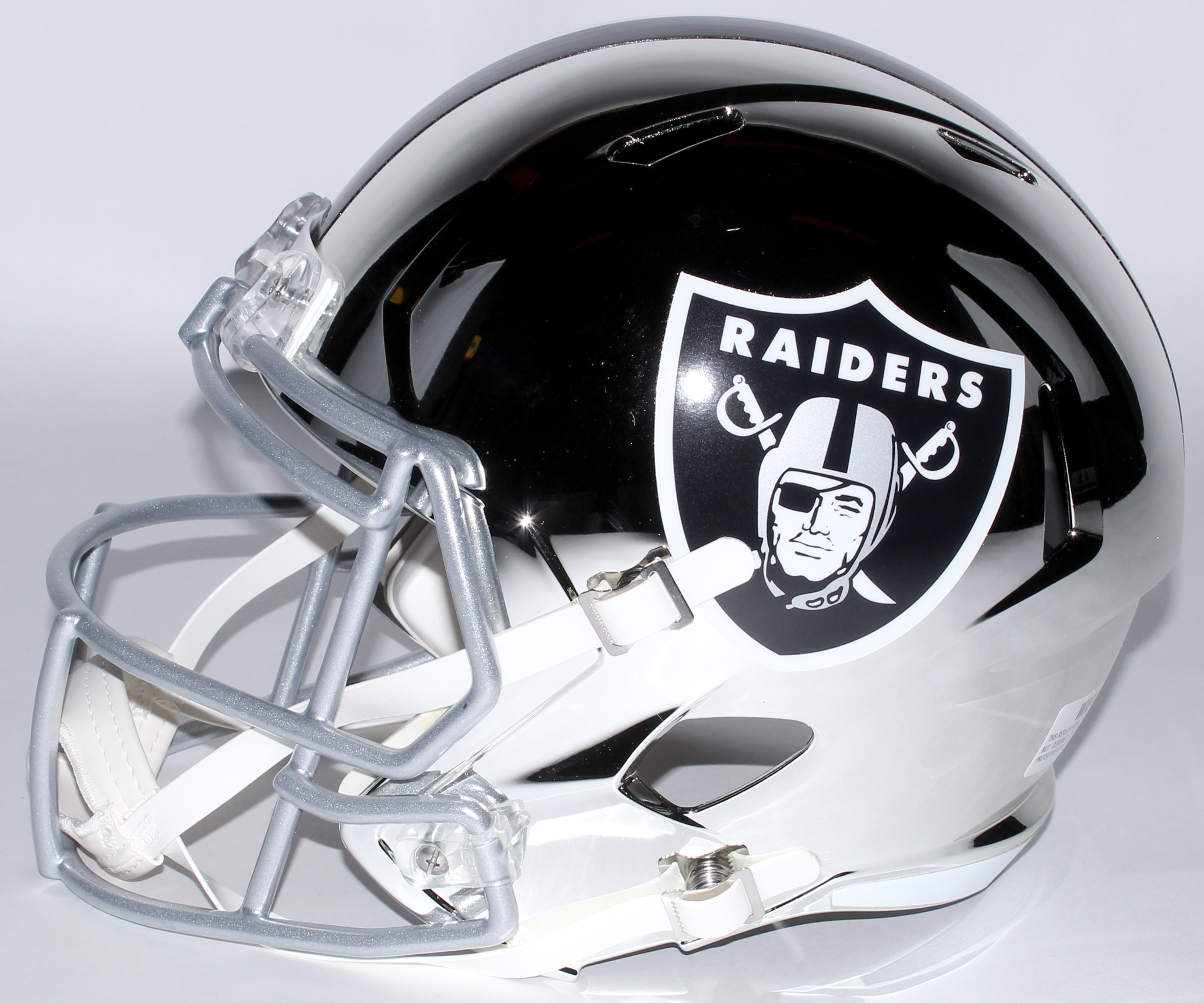 Riddell Raiders full-size replica chrome speed helmet. Hand-signed in white paint pen by Bo Jackson.