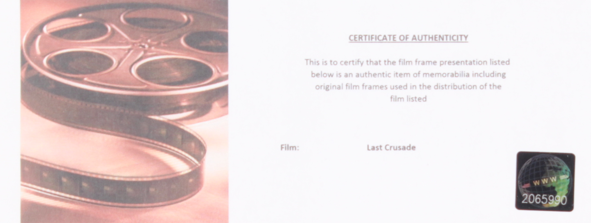 "Indiana Jones and the Last Crusade" Limited Edition Original Film / Movie Cell Display