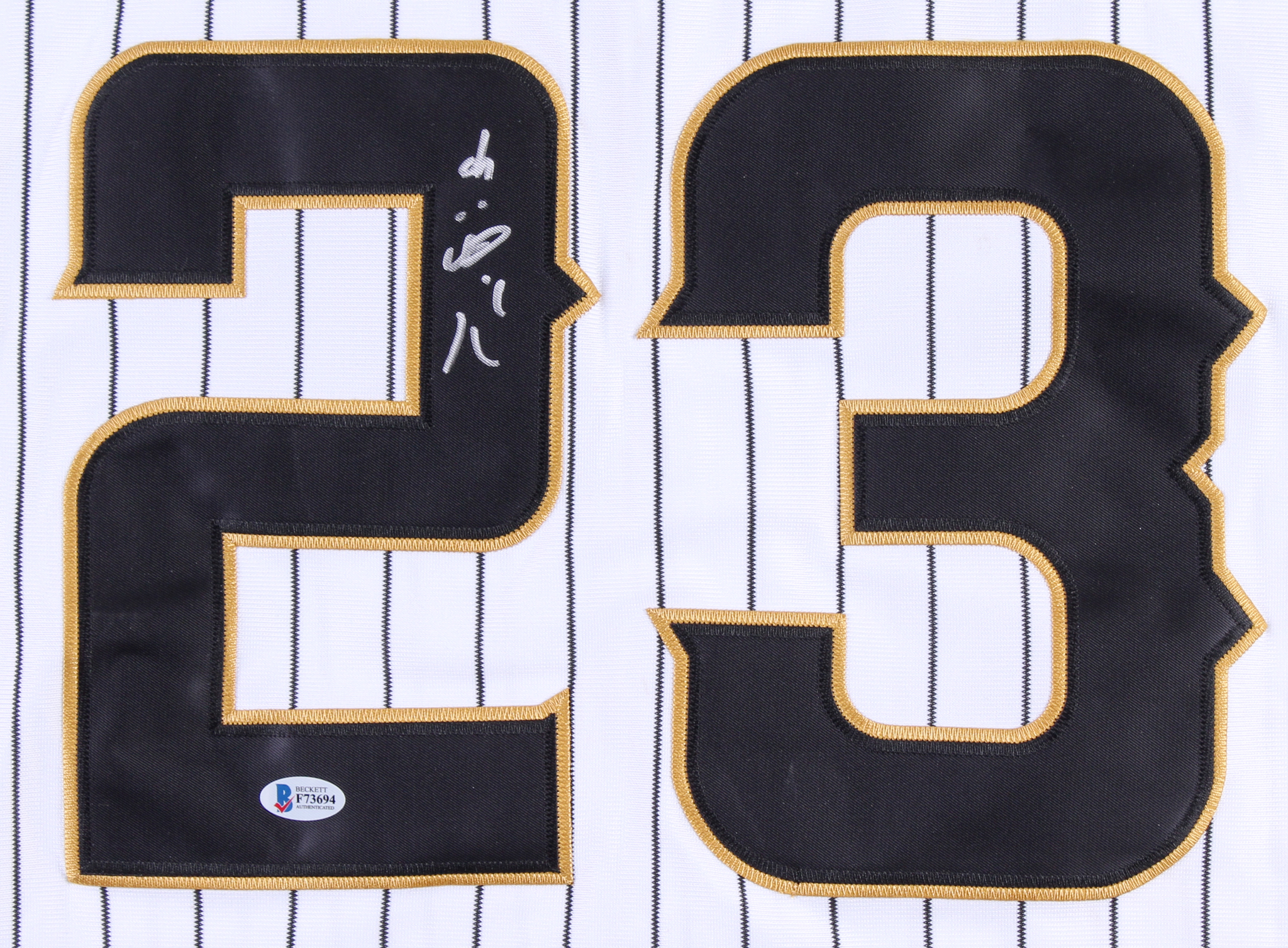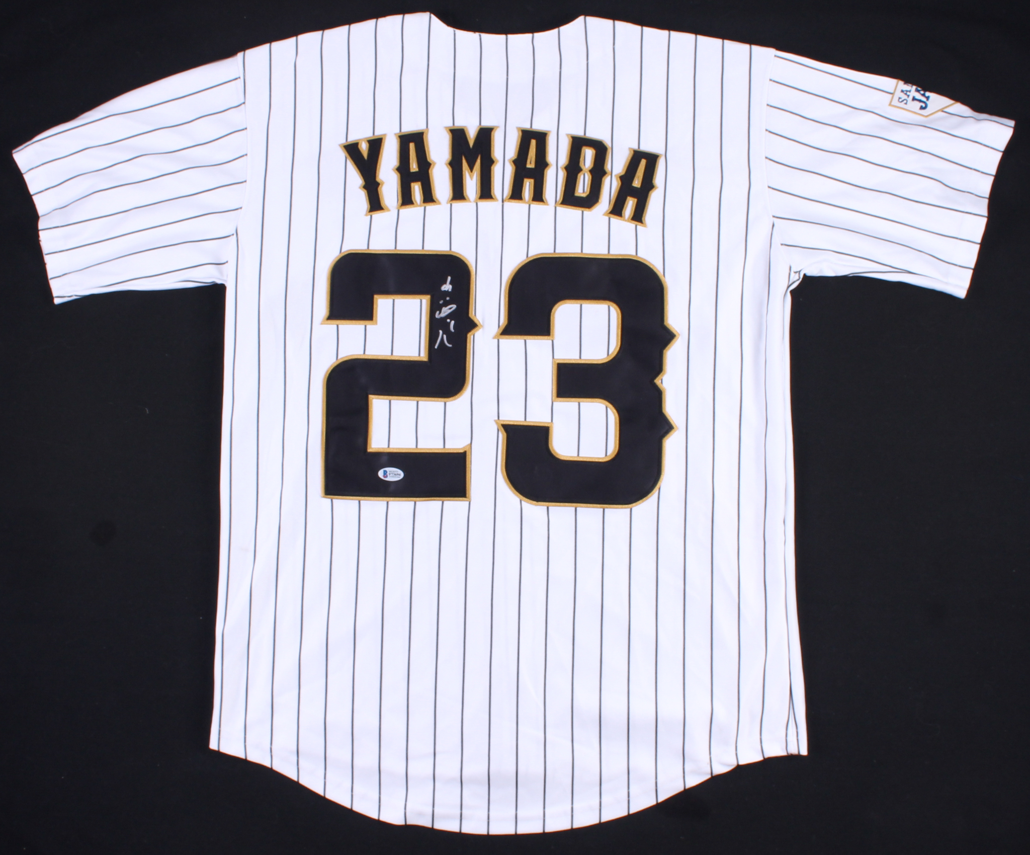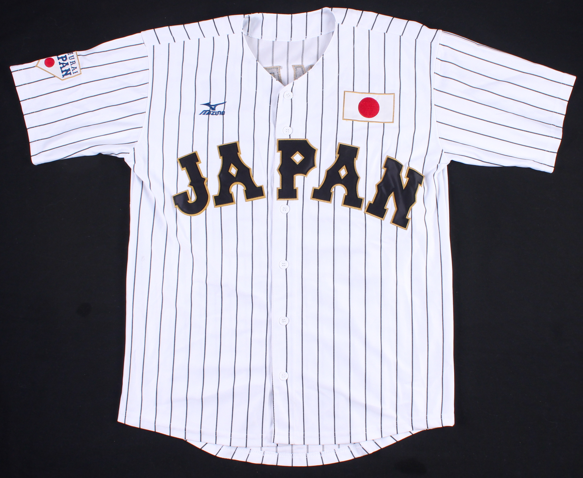 Mizuno on-field style jersey. Everything is sewn on, size XL. Hand-signed in silver paint pen by Tetsuto Yamada.