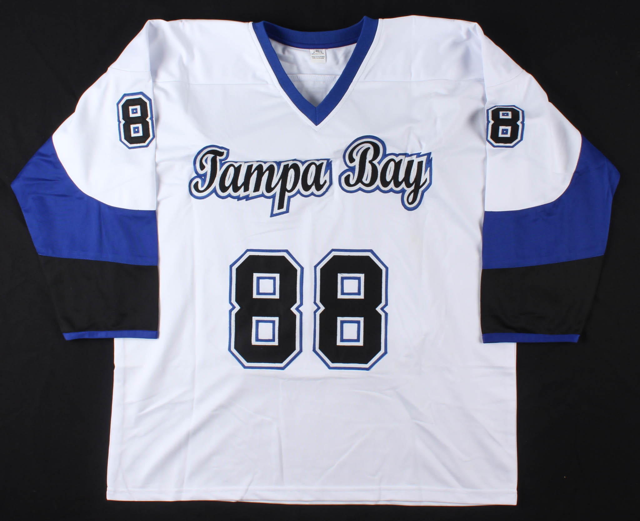 Custom on-ice style jersey. Everything is sewn on, size XL. Hand-signed in silver paint by Andrei Vasilevskiy.