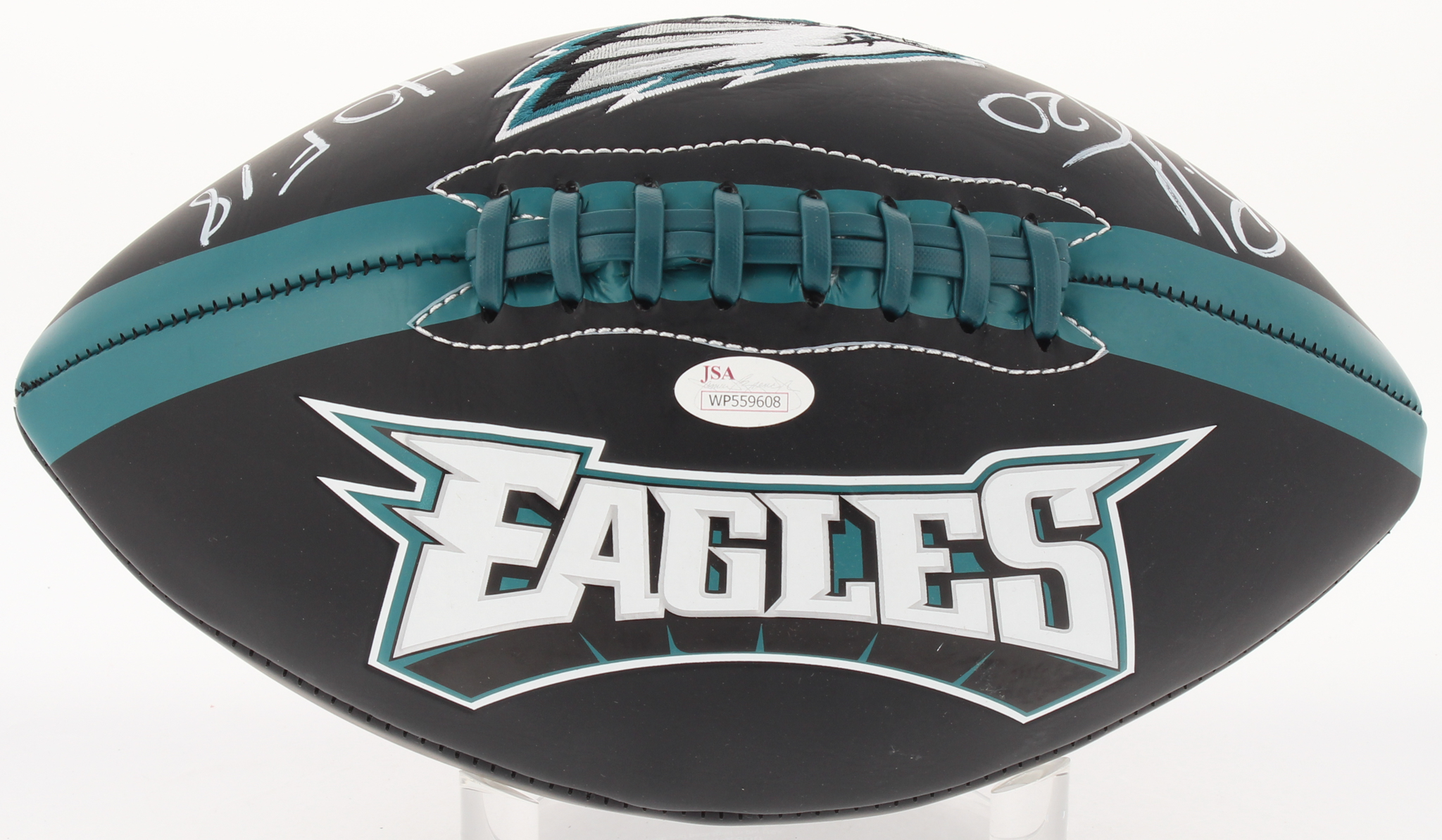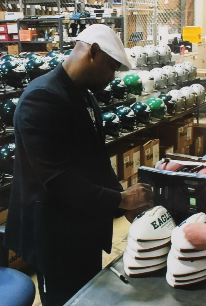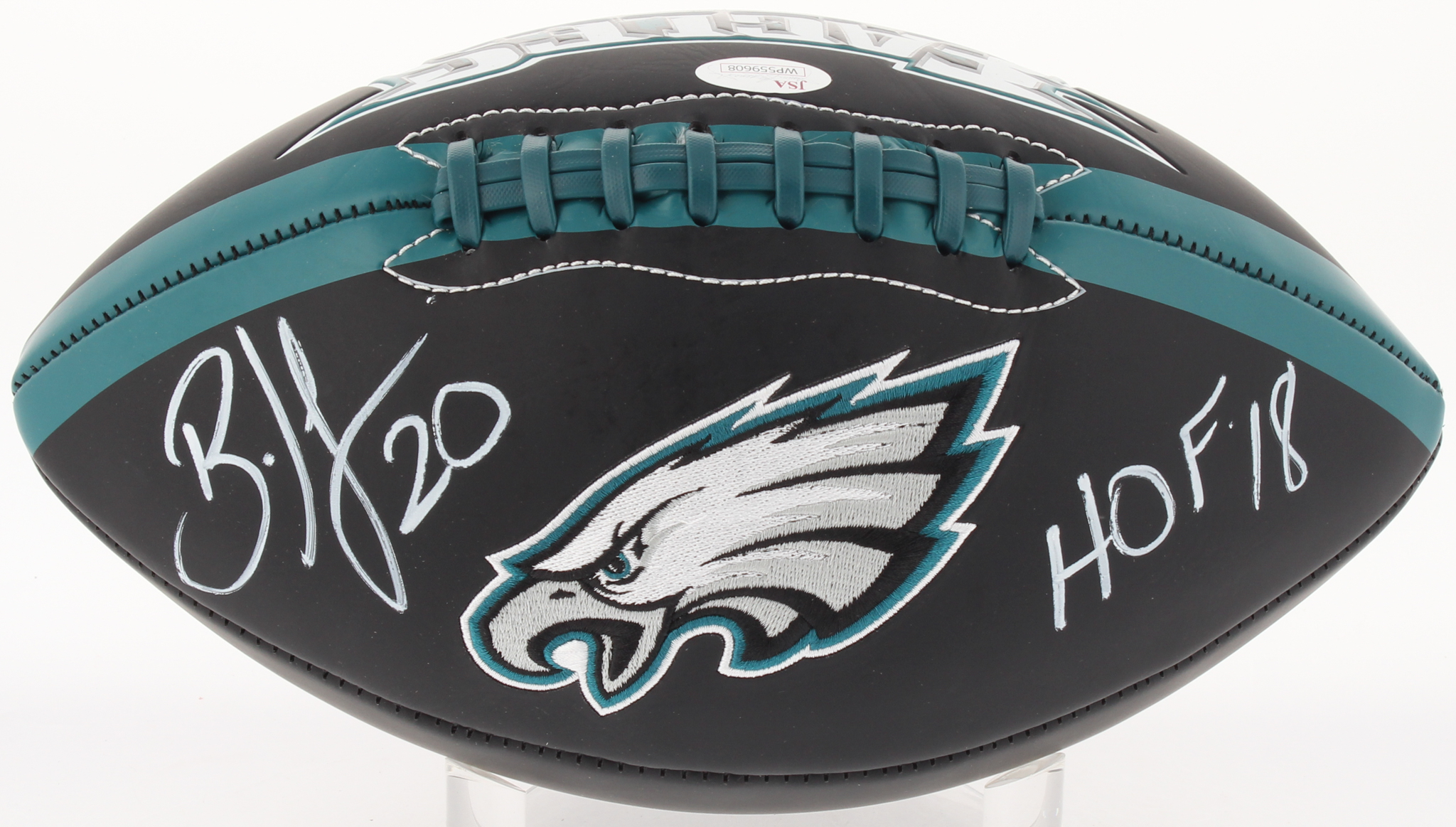 Philadelphia Eagles Logo Football. Hand-signed in white paint pen by Brian Dawkins (HOF).