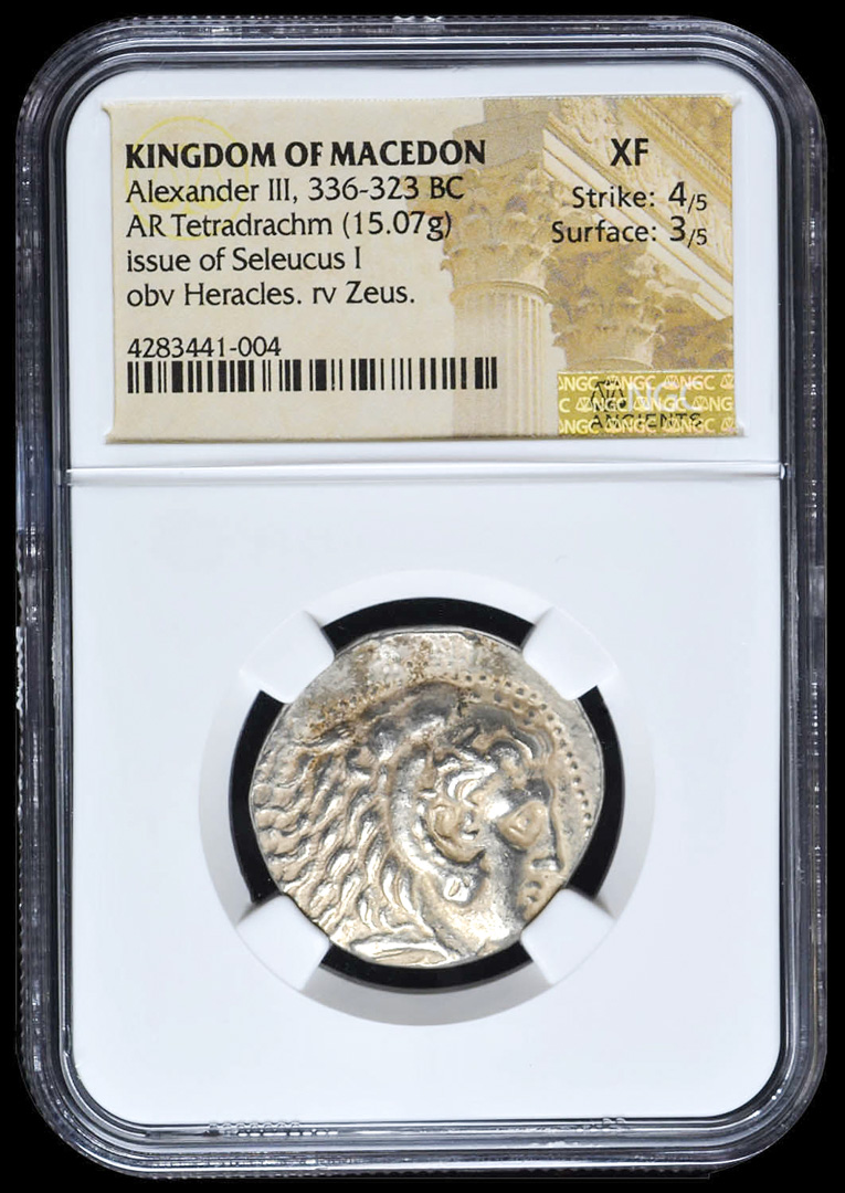 Alexander III "The Great" 336-323 BC Kingdom of Macedon - Ancient Greek Tetradrachm Silver Coin, Issue of Seleucus I (NGC XF) Strike: 4/5, Surface: 3/5