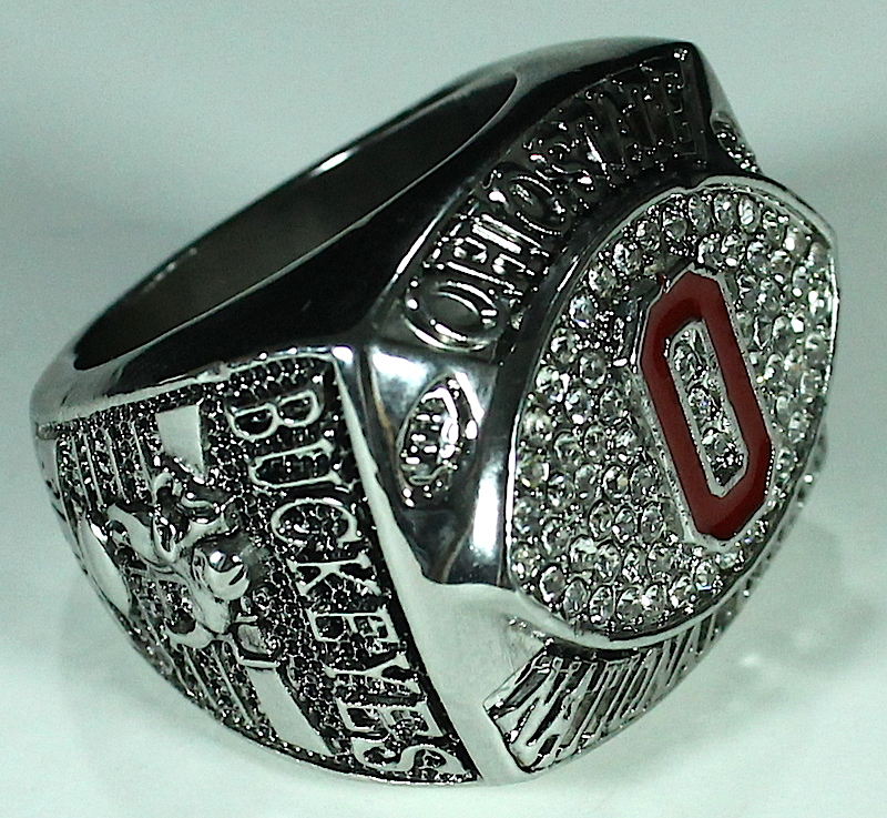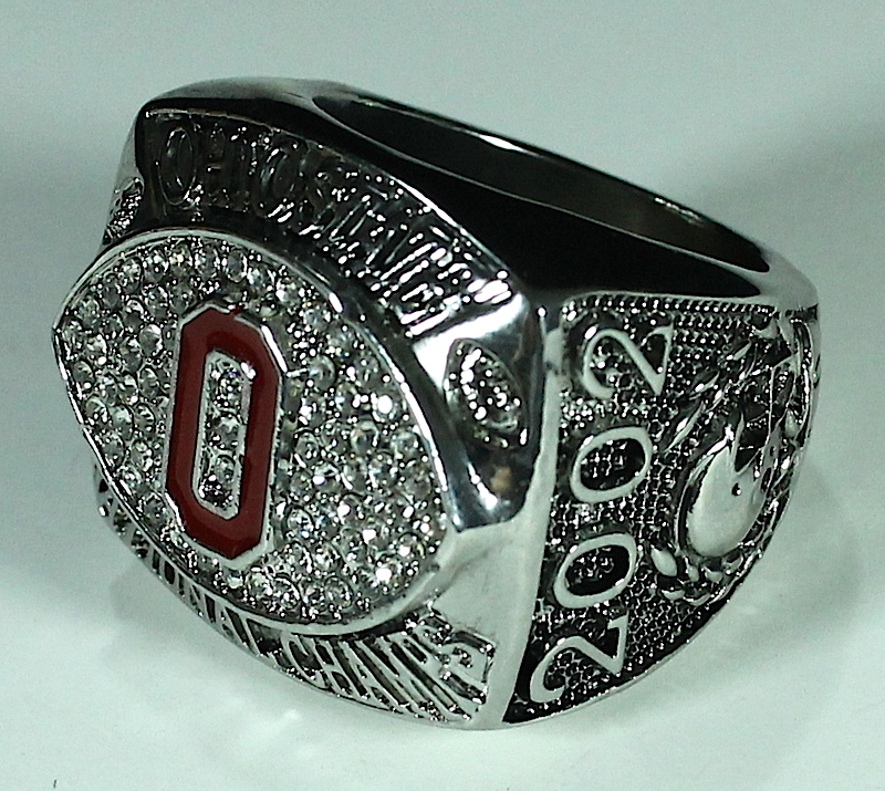 Ohio State Buckeyes High Quality Replica 2002 National Champions Ring. The ring has been hand crafted by professional jewelers. Made of metal alloy and clad with silver. Size 11.