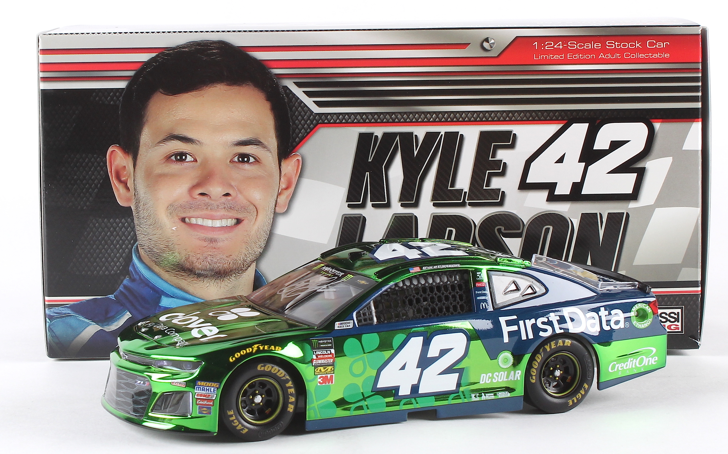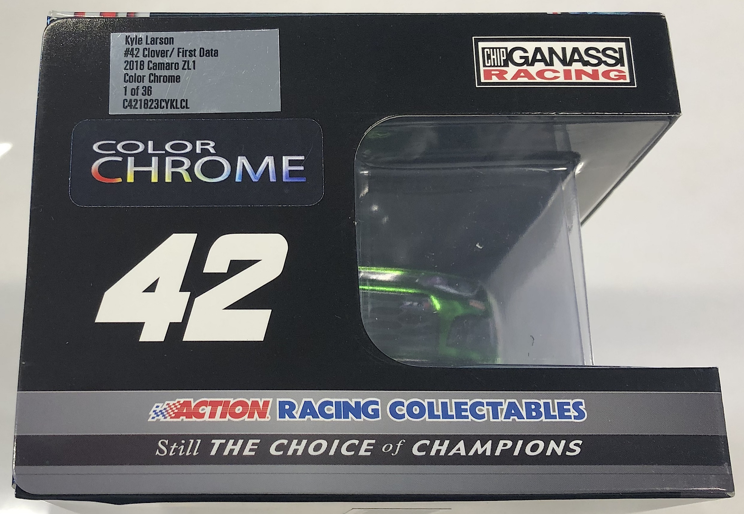Kyle Larson Signed NASCAR #42 Clover / First Data 2018 Camaro ZL1 - Color Chrome - 1:24 Premium Action Diecast Car (PA COA)