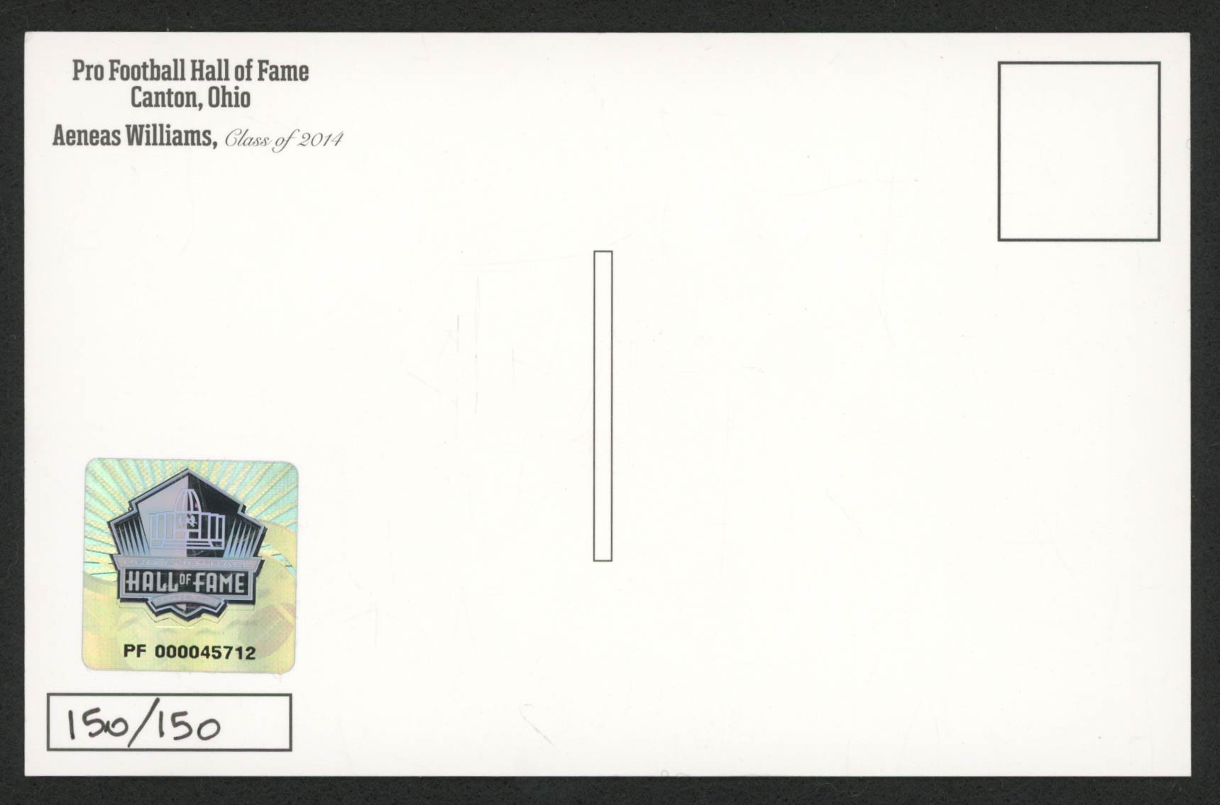 Bronze Bust Football Hall of Fame Postcard measures 3.5" x 5.5" in size and has been hand-signed in black felt-tip pen by Aeneas Williams (Cardinals, HOF). The postcard is limited edition and has been hand-numbered #150/150.