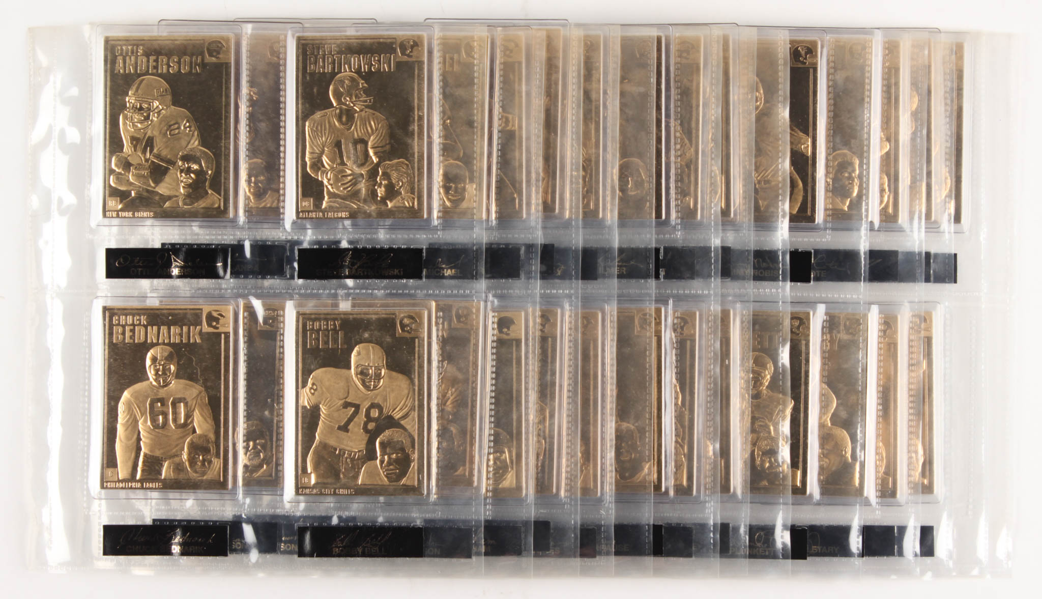 Set of (50) 1996-03 Danbury Mint 22Kt Gold Football Cards with #3 Franco Harris, #15 Gale Sayers, #11 Bart Starr