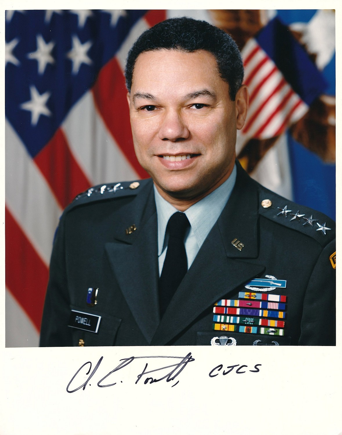 Photo measures 8" x 10" in size and is hand-signed in black felt-tip pen by Colin Powell.
