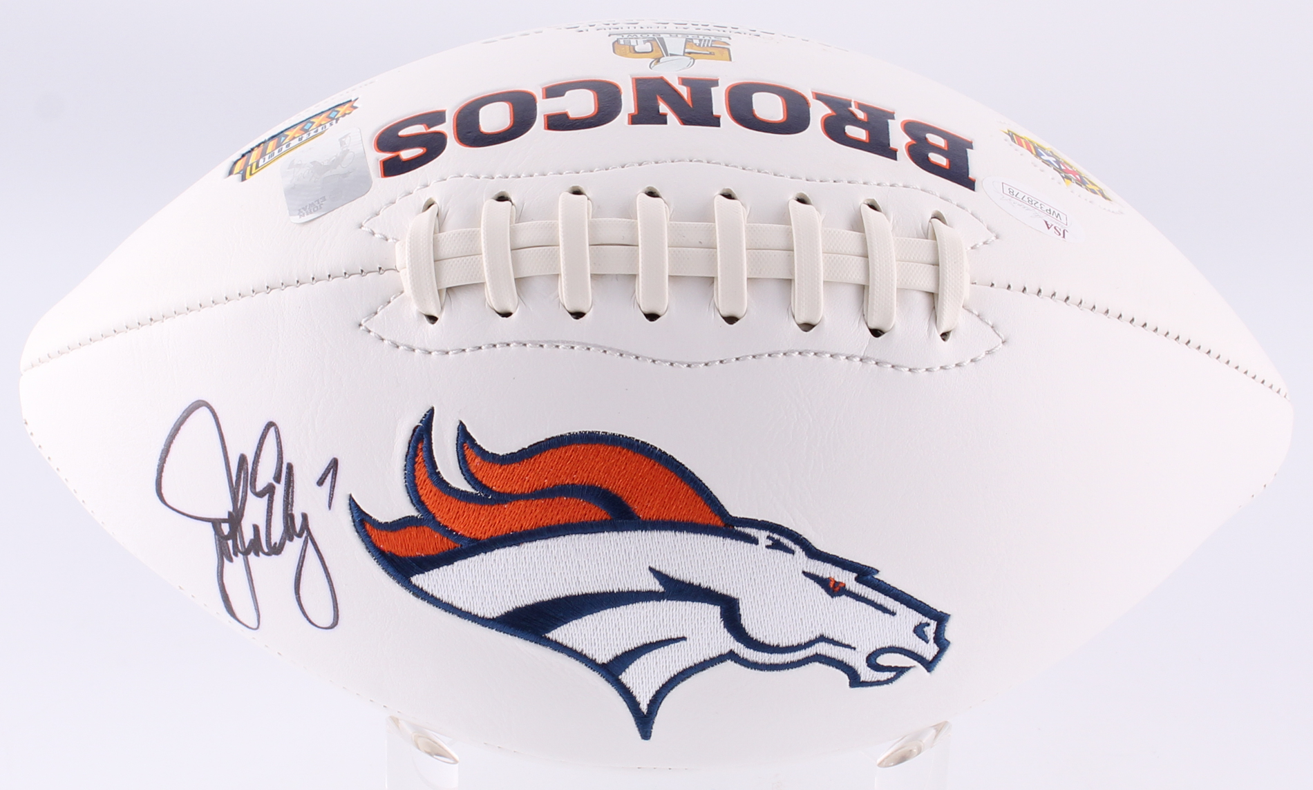 John Elway Signed Broncos Logo Football (JSA COA & Elway Hologram)