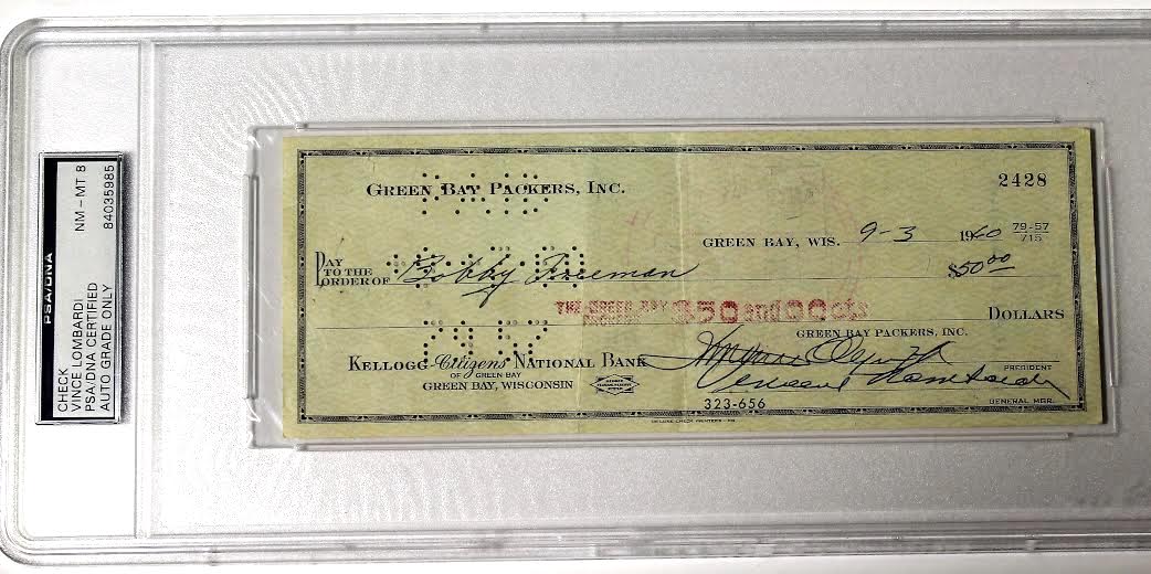 Vince Lombardi Signed Personal Bank Check (PSA Encapsulated)