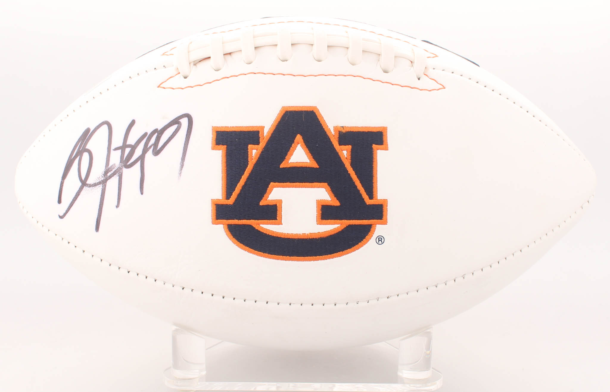 Auburn Tigers Logo Football. Hand-signed in black felt-tip pen by Bo Jackson. Please note, the signature shows signs of slight staining.