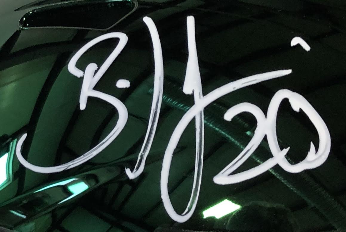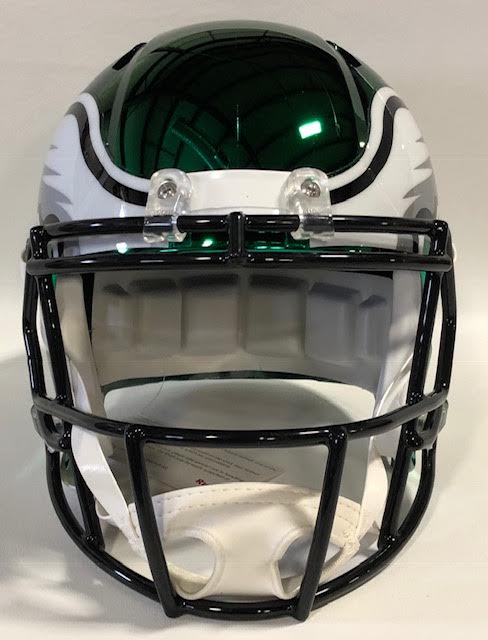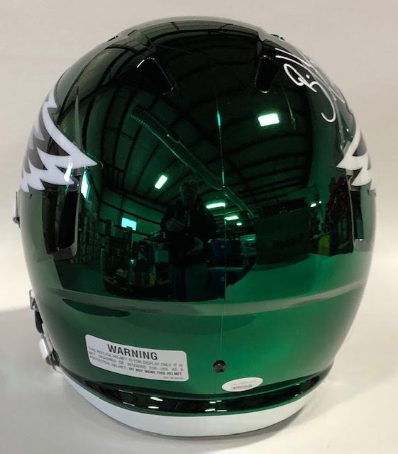 Eagles full-size chrome replica speed helmet. Hand-signed in white paint pen by Brian Dawkins (HOF).