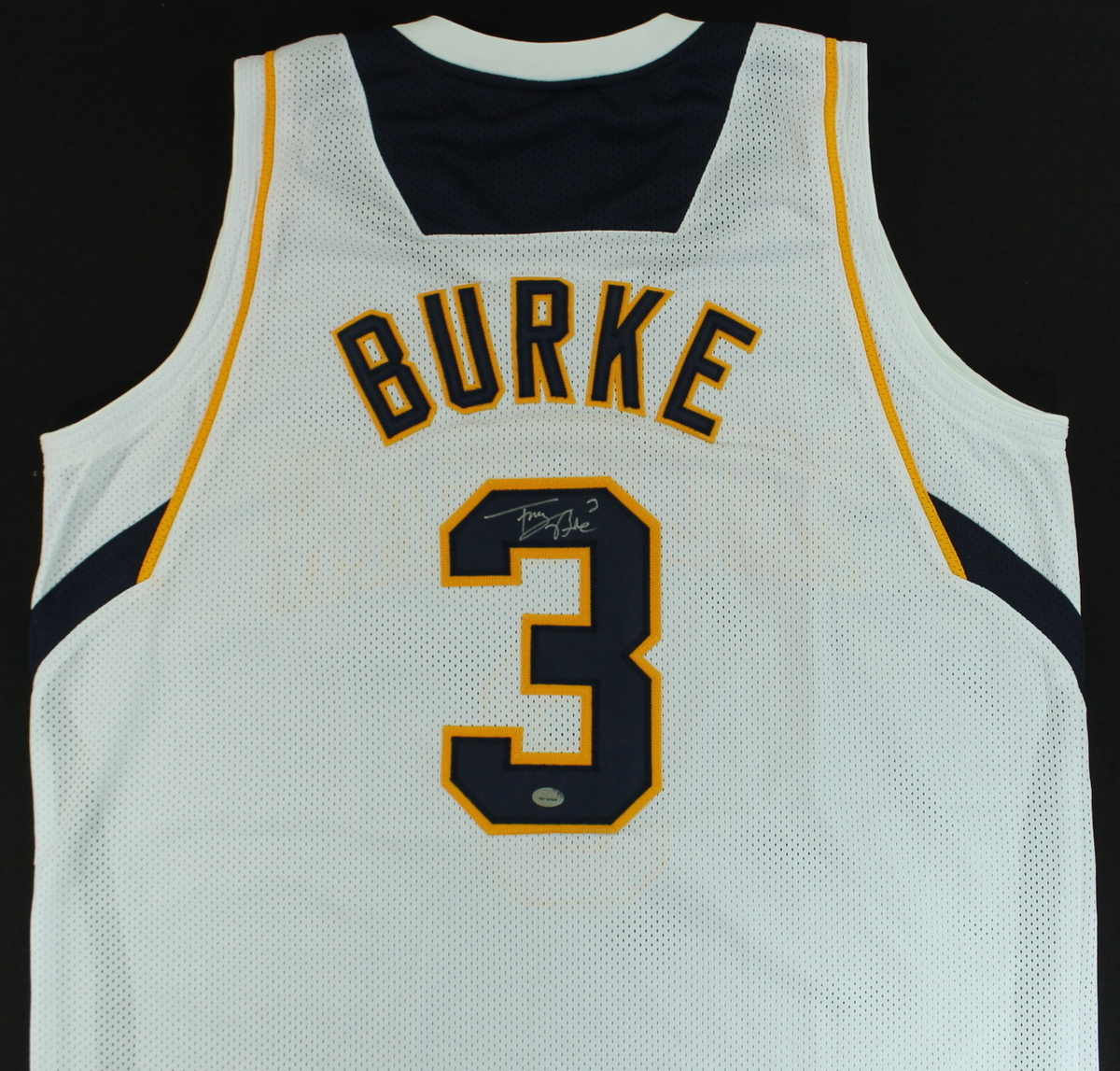 Custom on-court style jersey, size XL. Hand-signed in silver paint pen by Trey Burke (Jazz). The autograph includes an official Trey Burke GT Sports Marketing (GTSM) Hologram and matching COA for authenticity purposes.