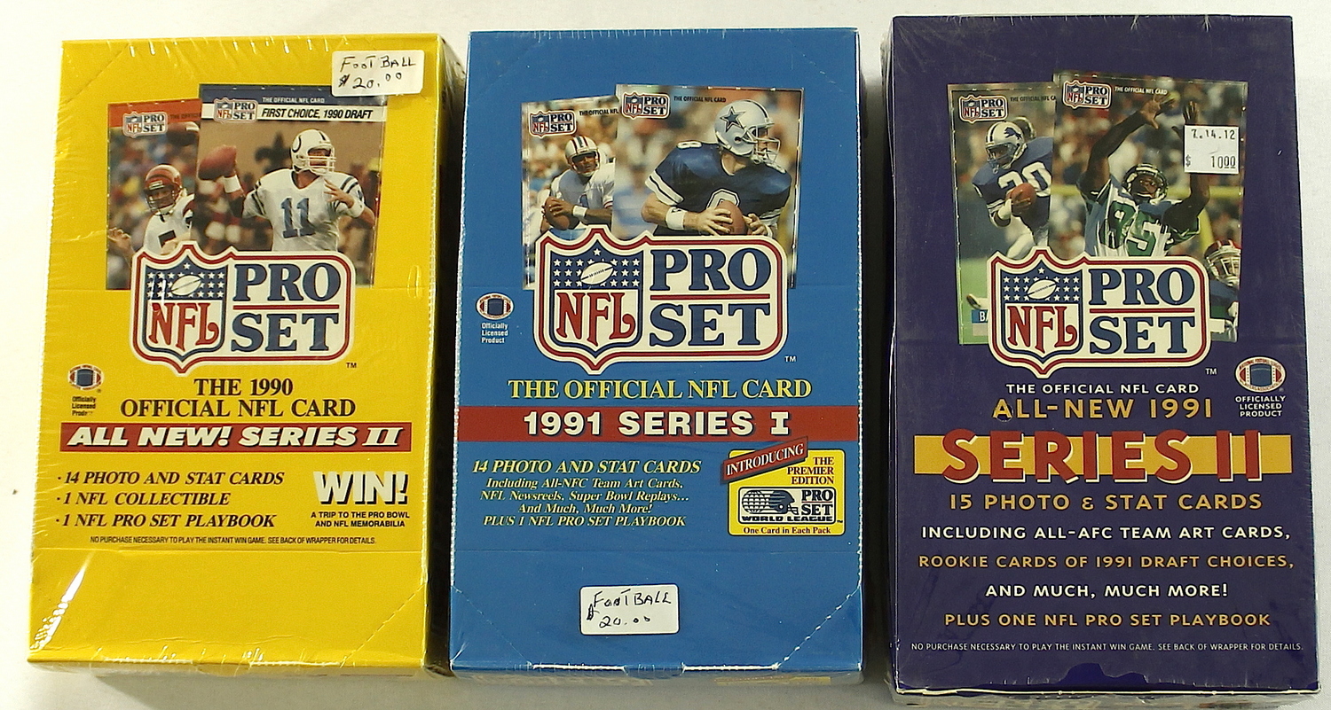Lot of (3) Boxes of NFL Pro Set Football Card Packs. Includes 1990 Series II, 1991 Series I & 1991 Series II. Each box is sealed and contains 36 unopened packs.