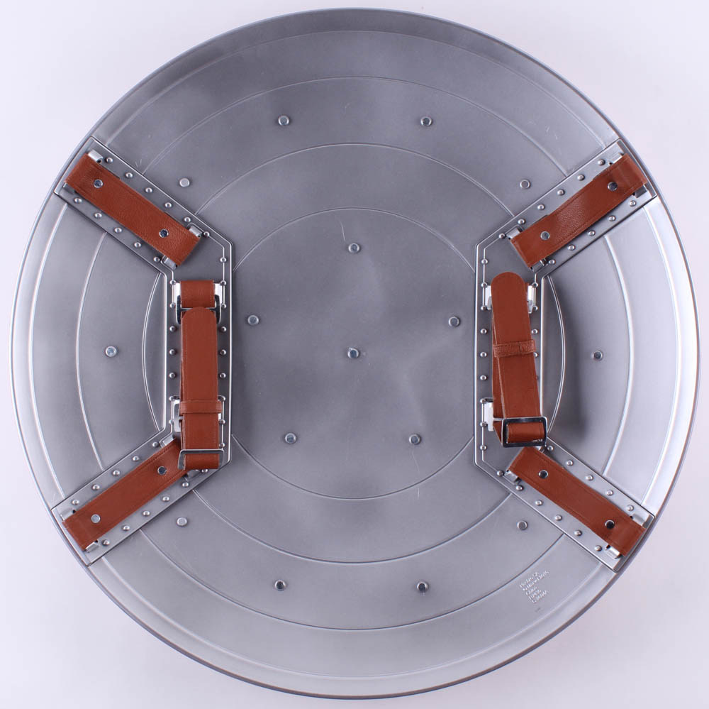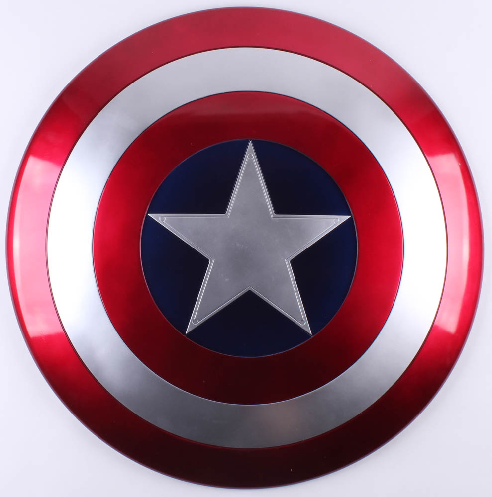 Replica Captain America shield measures approximately 24" in diameter. Please note, the item is unsigned.