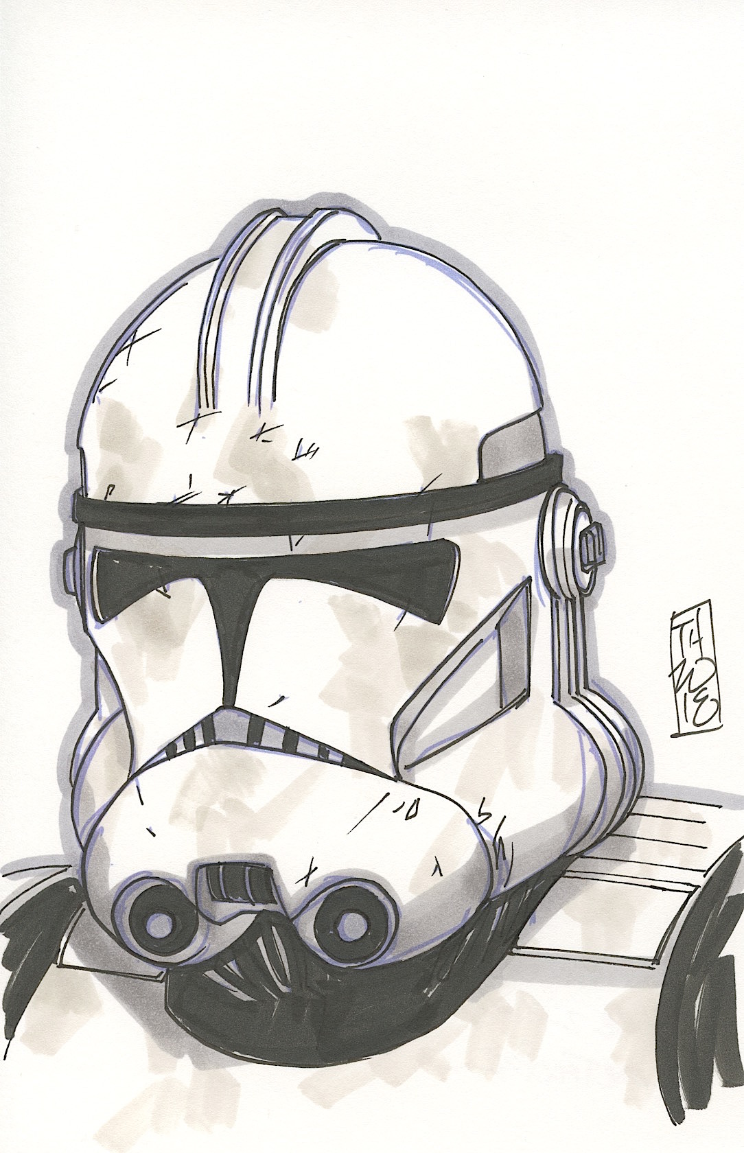 Tom Hodges - Phase II Clonetrooper "Star Wars" Signed ORIGINAL 5.5" x 8.5" Color Drawing on Paper (1/1)