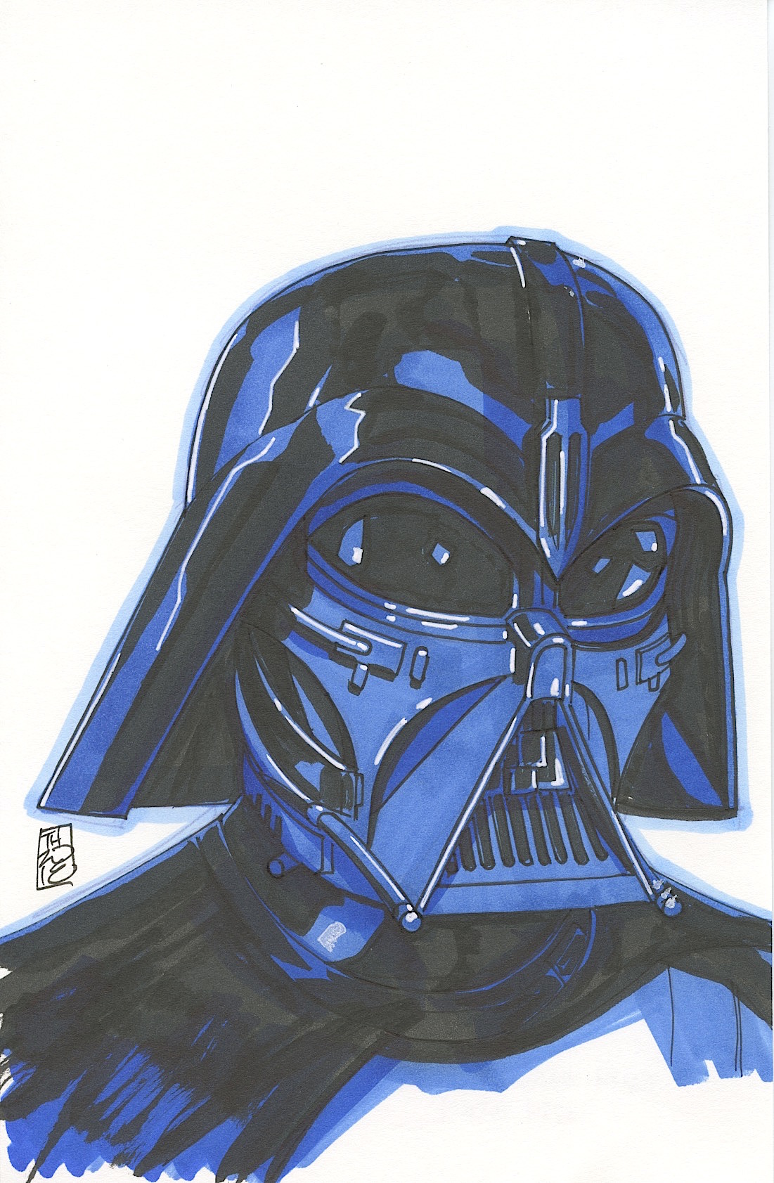 Tom Hodges - Darth Vader Ralph McQuarrie Concept "Star Wars" Signed ORIGINAL 5.5" x 8.5" Color Drawing on Paper (1/1)