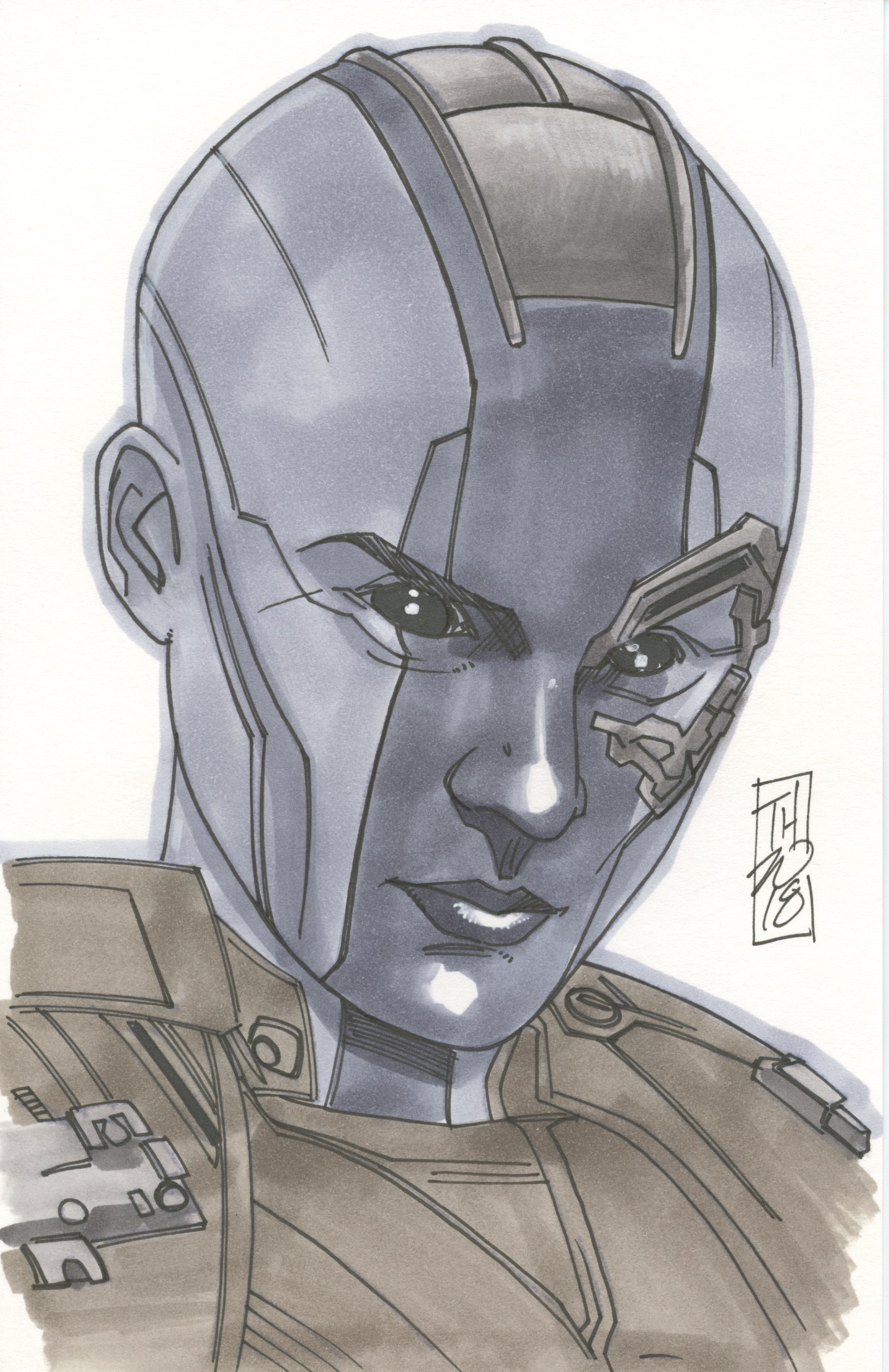 Tom Hodges - Nebula - Marvel - Signed ORIGINAL 5.5" x 8.5" Color Drawing on Paper (1/1)