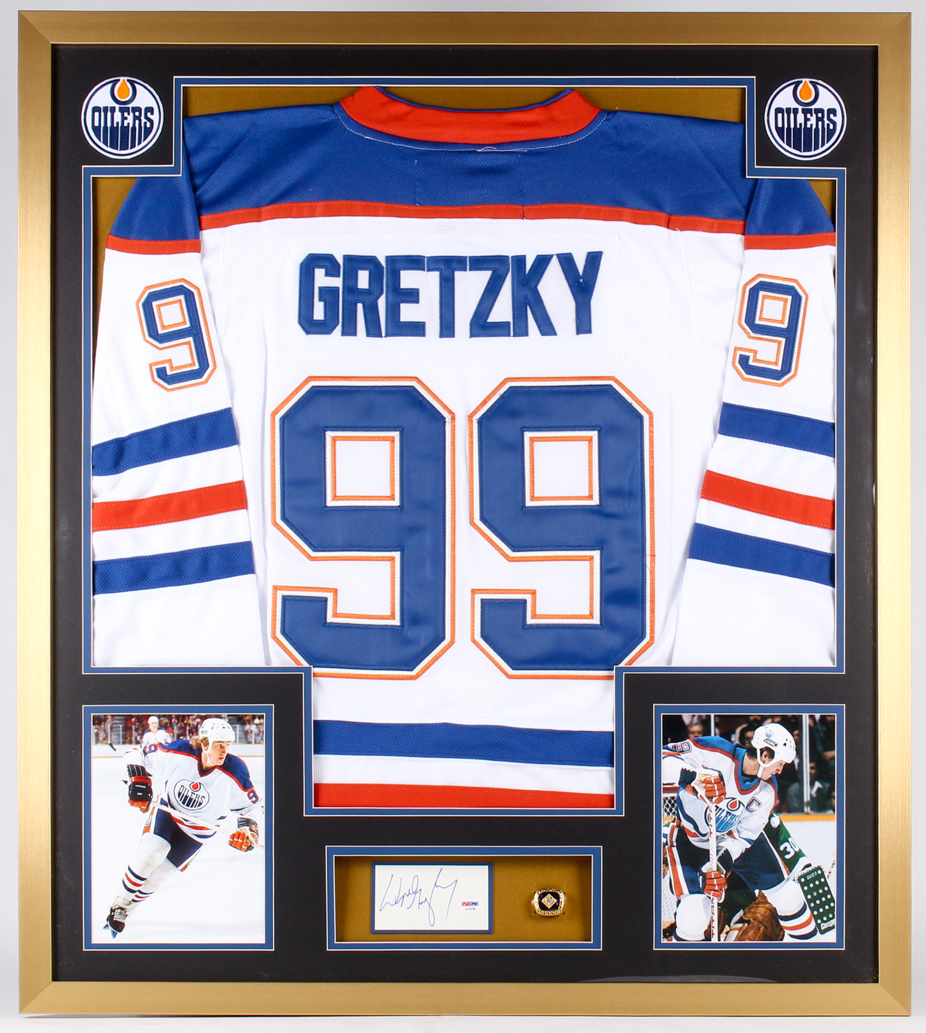 Wayne Gretzky Signed Oilers 32x36 Custom Framed Cut Display with Championship Ring (PSA LOA)