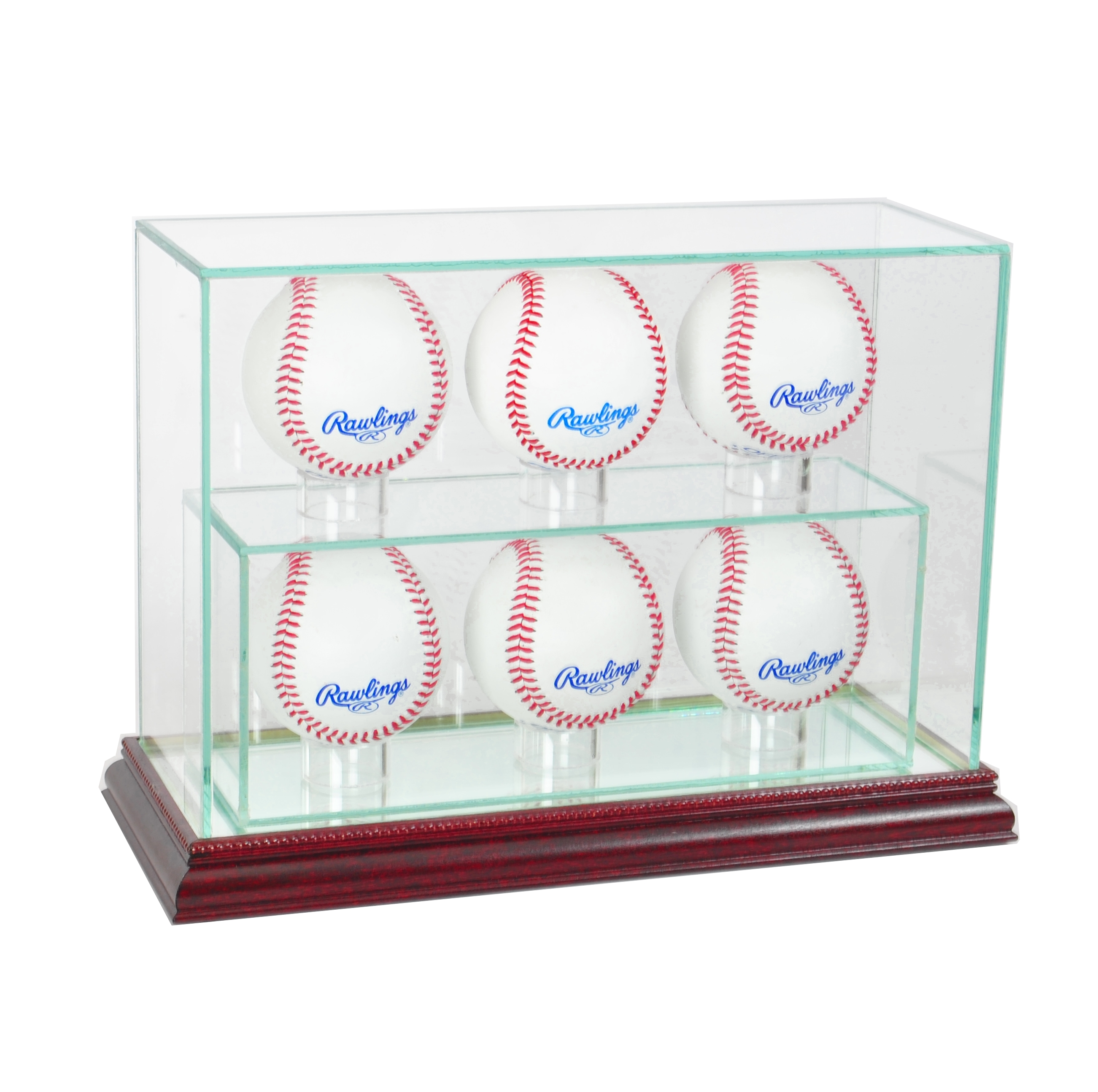 4-6 Baseball Upright Premium Glass Display Case with Mirrored Cherry Wood Base