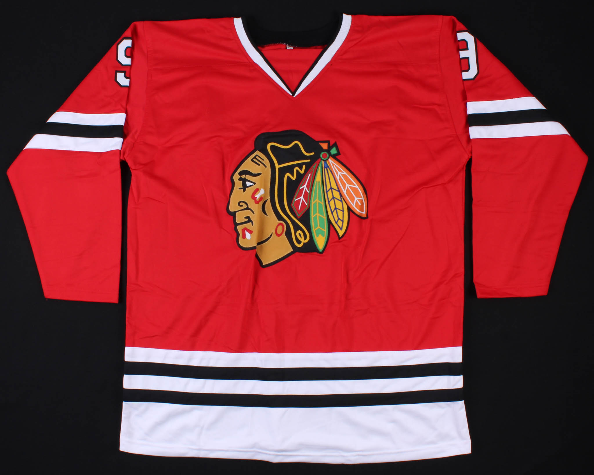Custom on-ice style jersey. Everything is sewn on, size XL. Hand-signed and inscribed in black felt-tip pen by Bobby Hull (HOF).