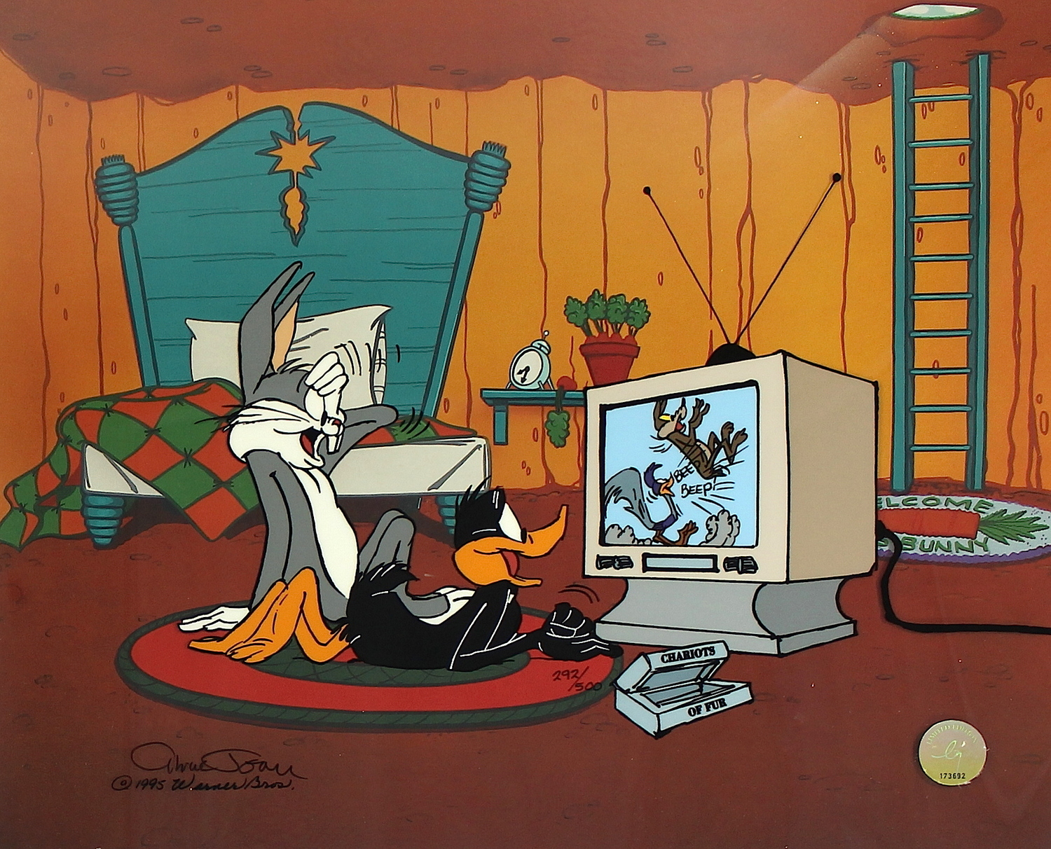 Chuck Jones Signed Warner Bros. "Just Fur Laughs" Bugs Bunny & Daffy Duck Limited Edition Hand-Painted Animation Cel #292/500 (Jones COA)