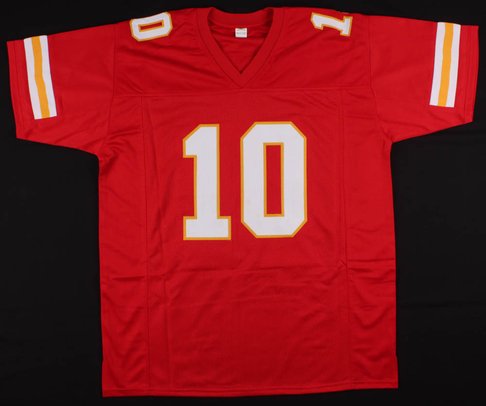 Custom on-field style jersey. Everything sewn on, size XL. Hand-signed in black felt-tip pen by Tyreek Hill.