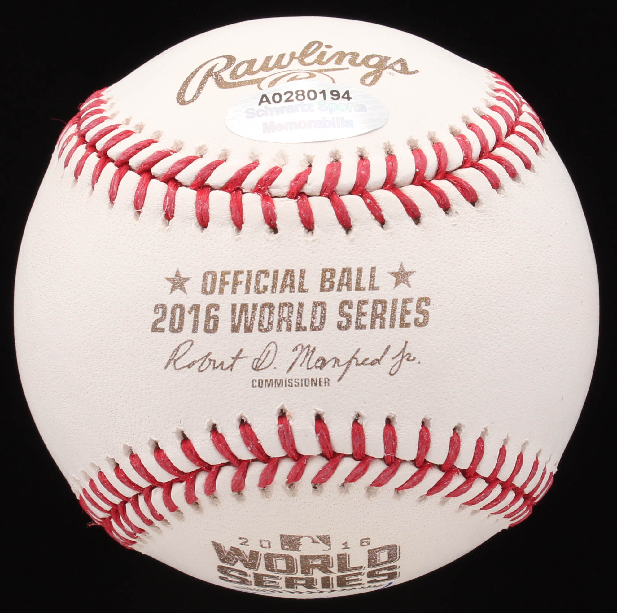 Rawlings Official 2016 World Series Baseball. Hand-signed in blue ink pen by Jorge Soler (Cubs).