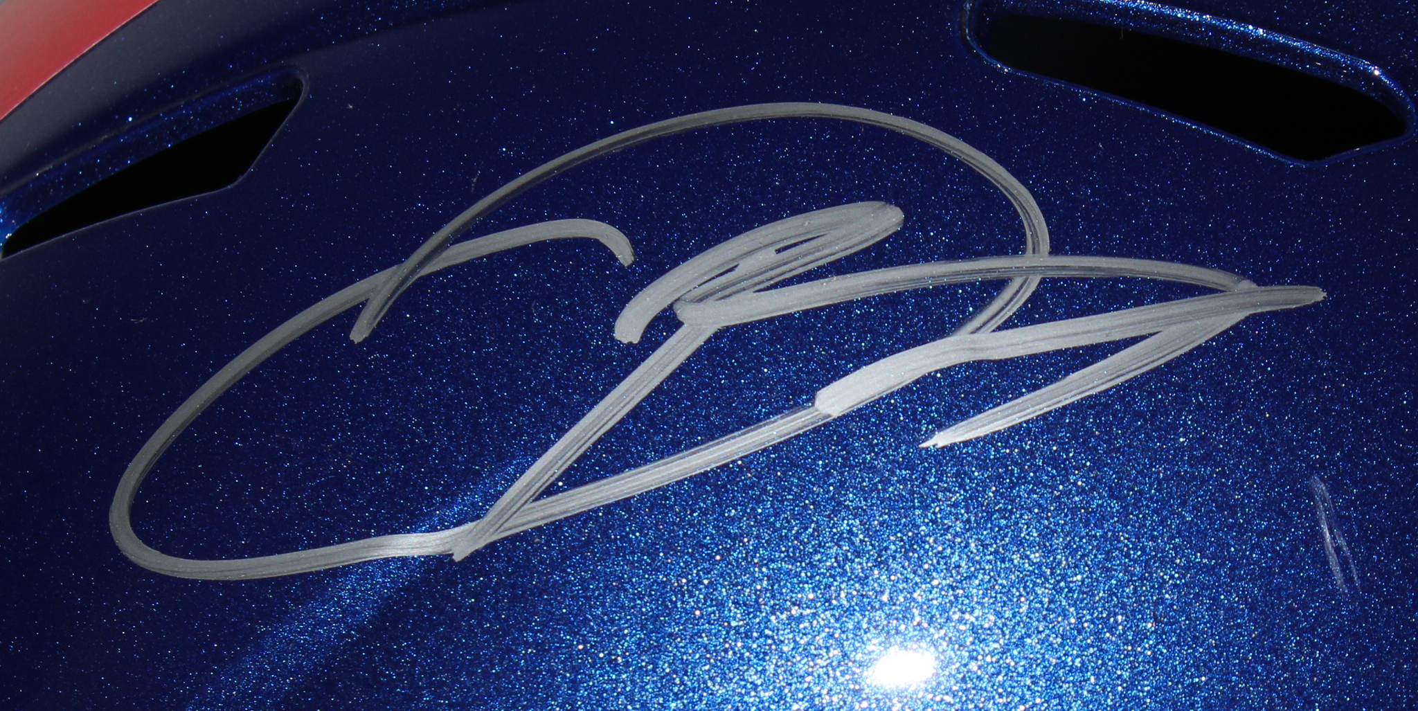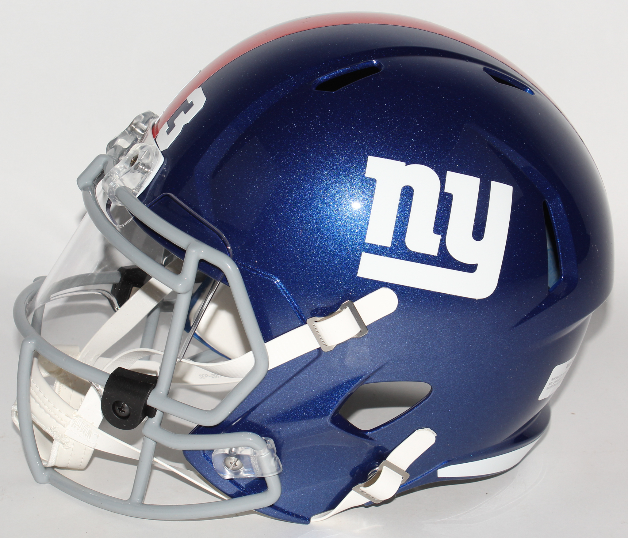 New York Giants full-size replica speed helmet with visor. Hand-signed in silver paint pen by Odell Beckham Jr.