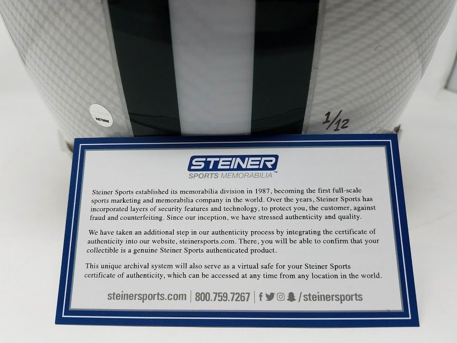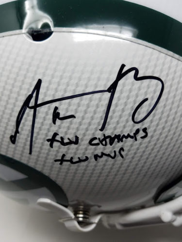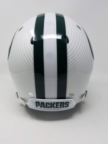 Aaron Rodgers was a first round draft pick of the Green Bay Packers in the 2005 NFL Draft. Rodgers finally got the starting nod prior to the 2008 season and hasn't looked back since. Rodgers has led the Packers to the playoffs for two straight seasons 2009: 4.434 yards 30 TD a 7 INT 11-5 record and arguably did his best work in 2010 putting the Packers on his shoulders and leading them into the SB. On February 6th, 2011 Rodgers returned the Packers to glory leading them past the Pittsburgh Steelers in SB XLV. Aaron Rodgers is one of the best QB in the NFL today and should have the Pack competing for more SB titles for years to come. The signature on this item has been authenticated by Steiner Sports and features a uniquely numbered tamper-proof hologram which can be verified in our online database. This process ensures your item is authentic and prevents duplication and fraud. This helmet is limited to just 12 and you will receive number "1" from the edition.