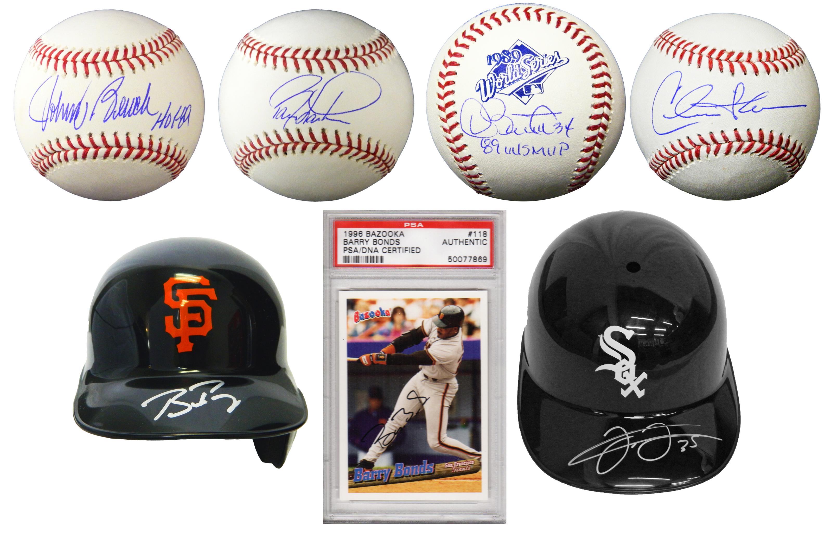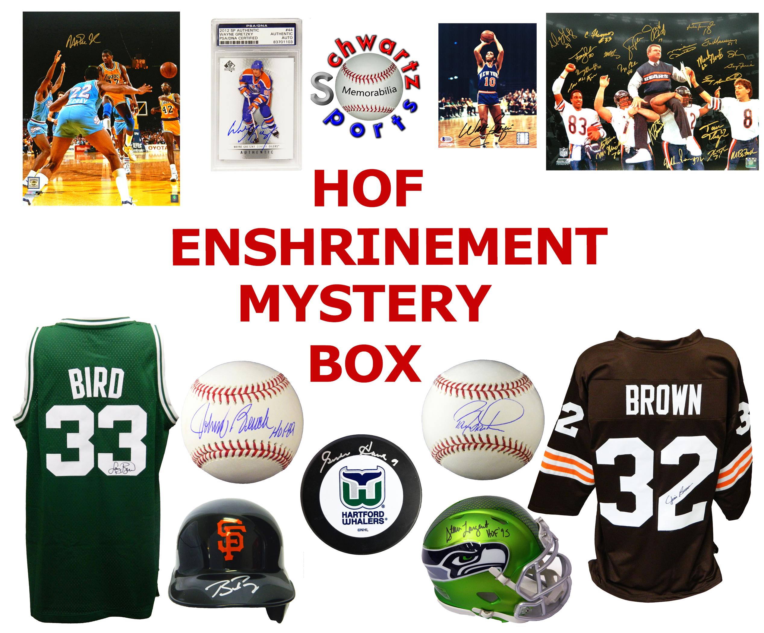 Each Hall of Fame Enshrinement Mystery Box contains four (4) autographed collectibles – one from each of the four major American sports (Baseball, Football, Basketball, and Hockey). Items in this edition include jerseys, baseballs, hockey pucks, 8x10 photos, 16x20 photos, encapsulated autographs, mini helmets, batting helmets and more. There are over 150 different Athletes/Celebrities and over 75 Hall of Famers included in this Series 6, which is a Pristine Exclusive Edition that is limited to 75 boxes.