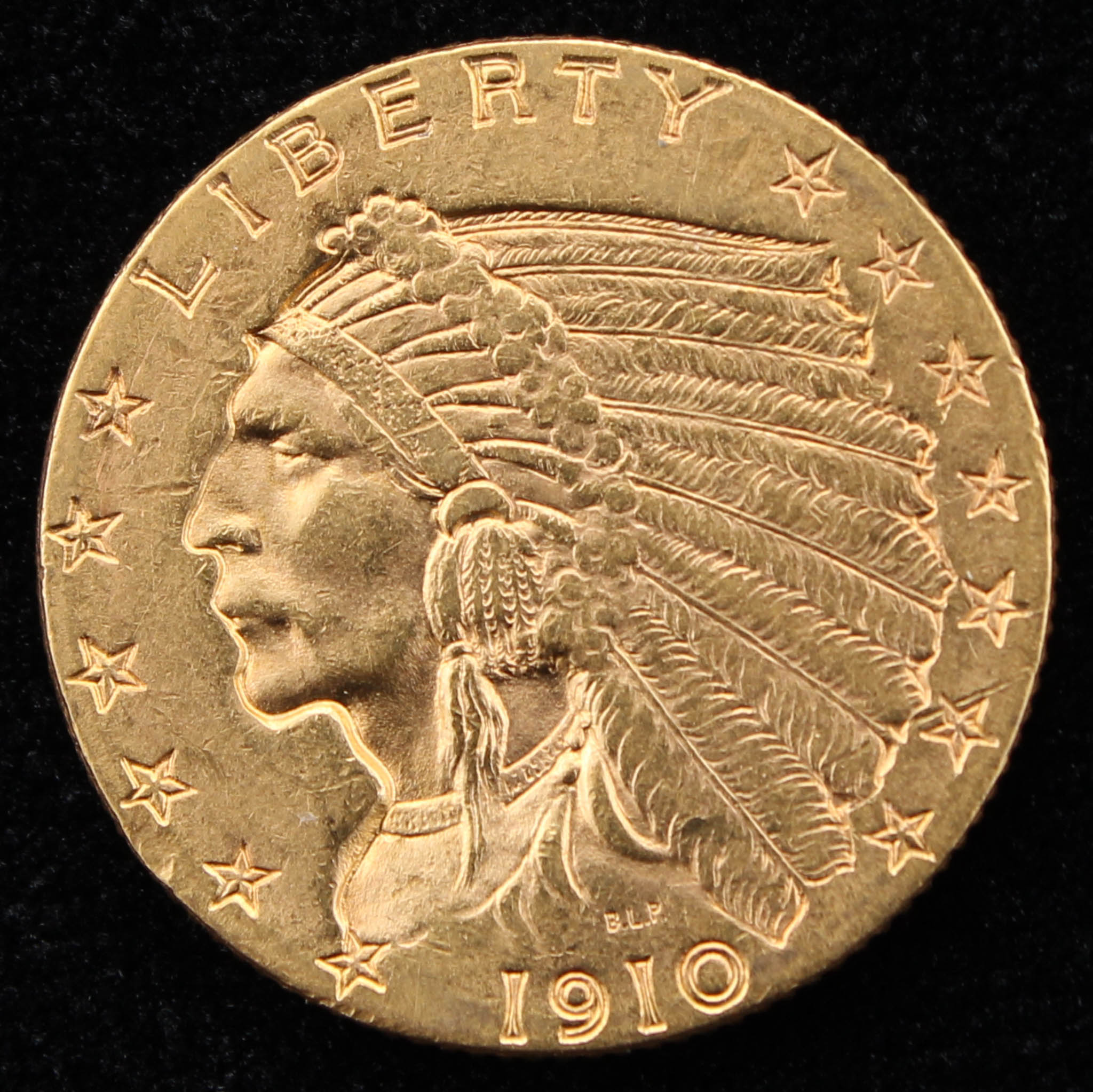 1910 $2.5 Indian Head Quarter Eagle Gold Coin