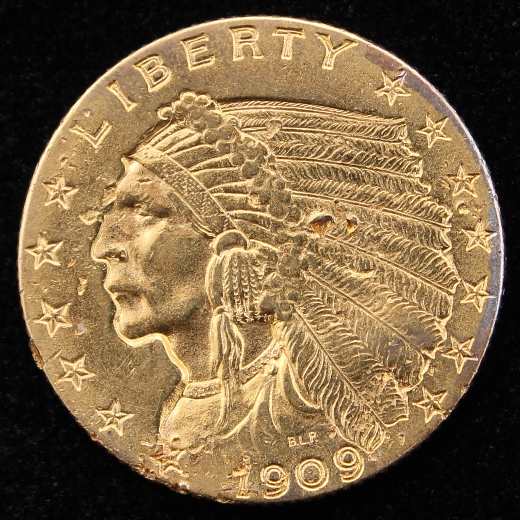 1909 $2.5 Indian Head Quarter Eagle Gold Coin