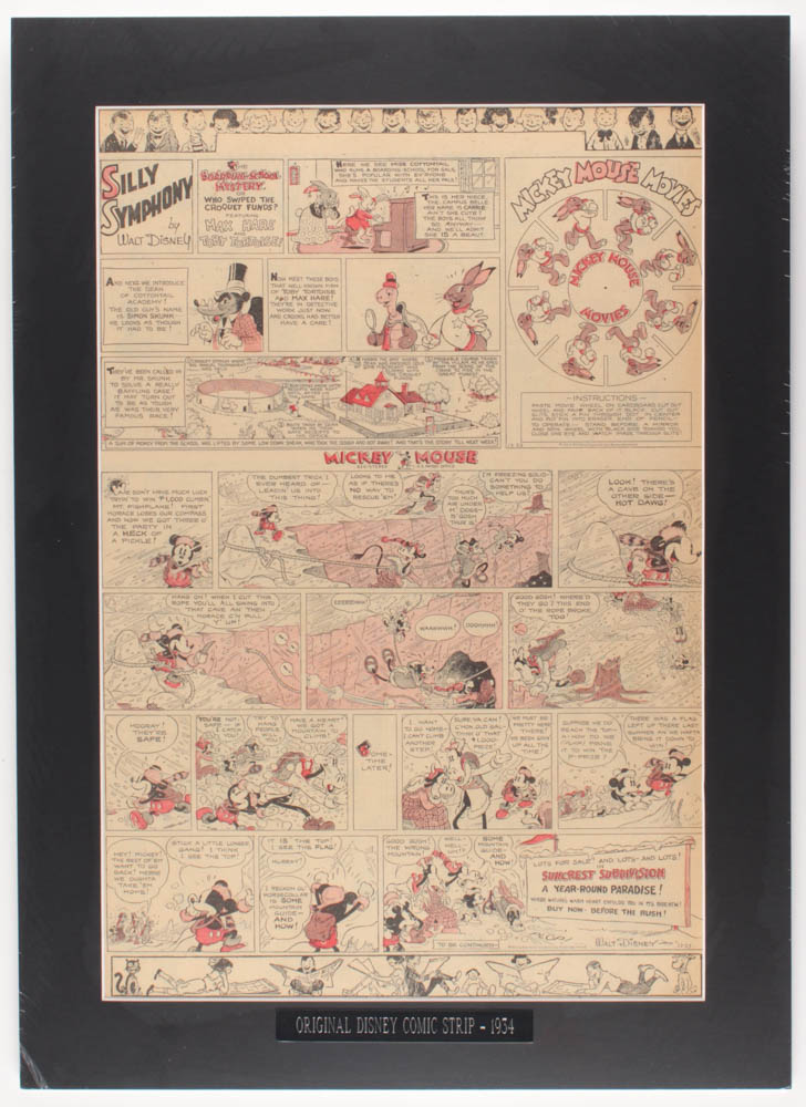 1934 "Silly Symphony" & "Mickey Mouse" 18x25 Custom Matted Original Disney Comic Strip Display