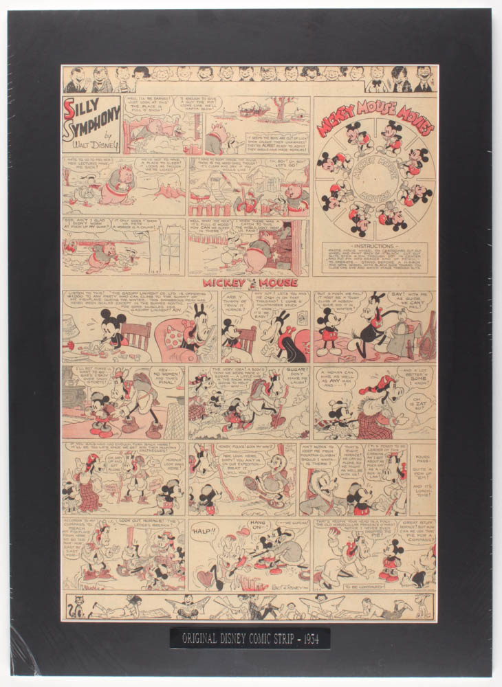 1934 "Silly Symphony" & "Mickey Mouse" 18x25 Custom Matted Original Disney Comic Strip Display