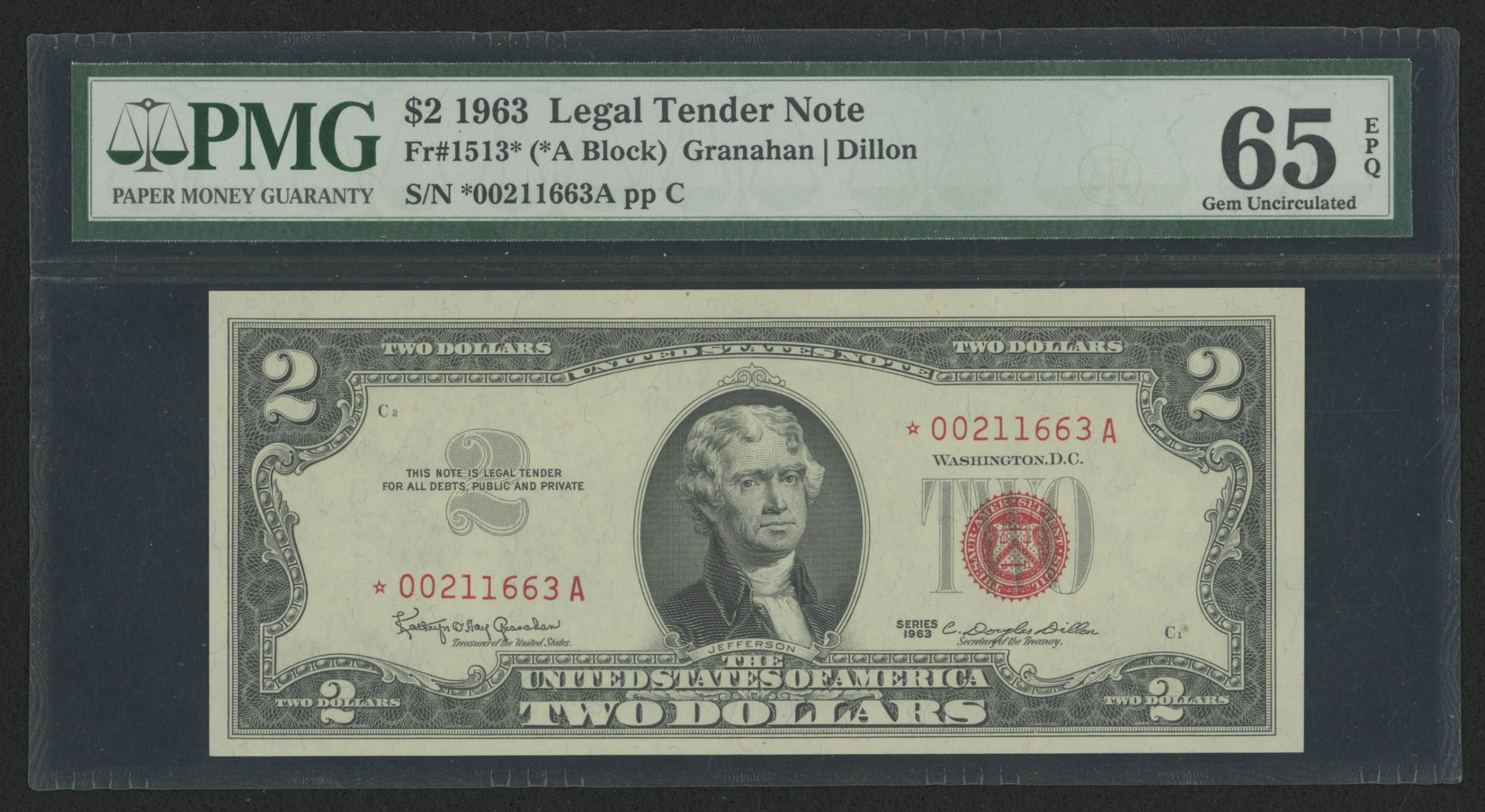 Star Note - 1963 $2 Two Dollar Red Seal U.S. Bank Note Bill (PMG 65) (EPQ)
