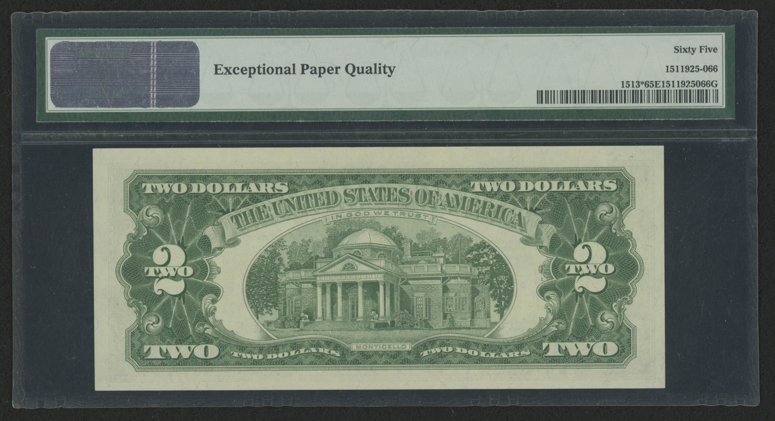 Graded PMG 65 (Gem Uncirculated) EPQ (Exceptional Paper Quality). Please see photos for more details regarding the condition of the note.