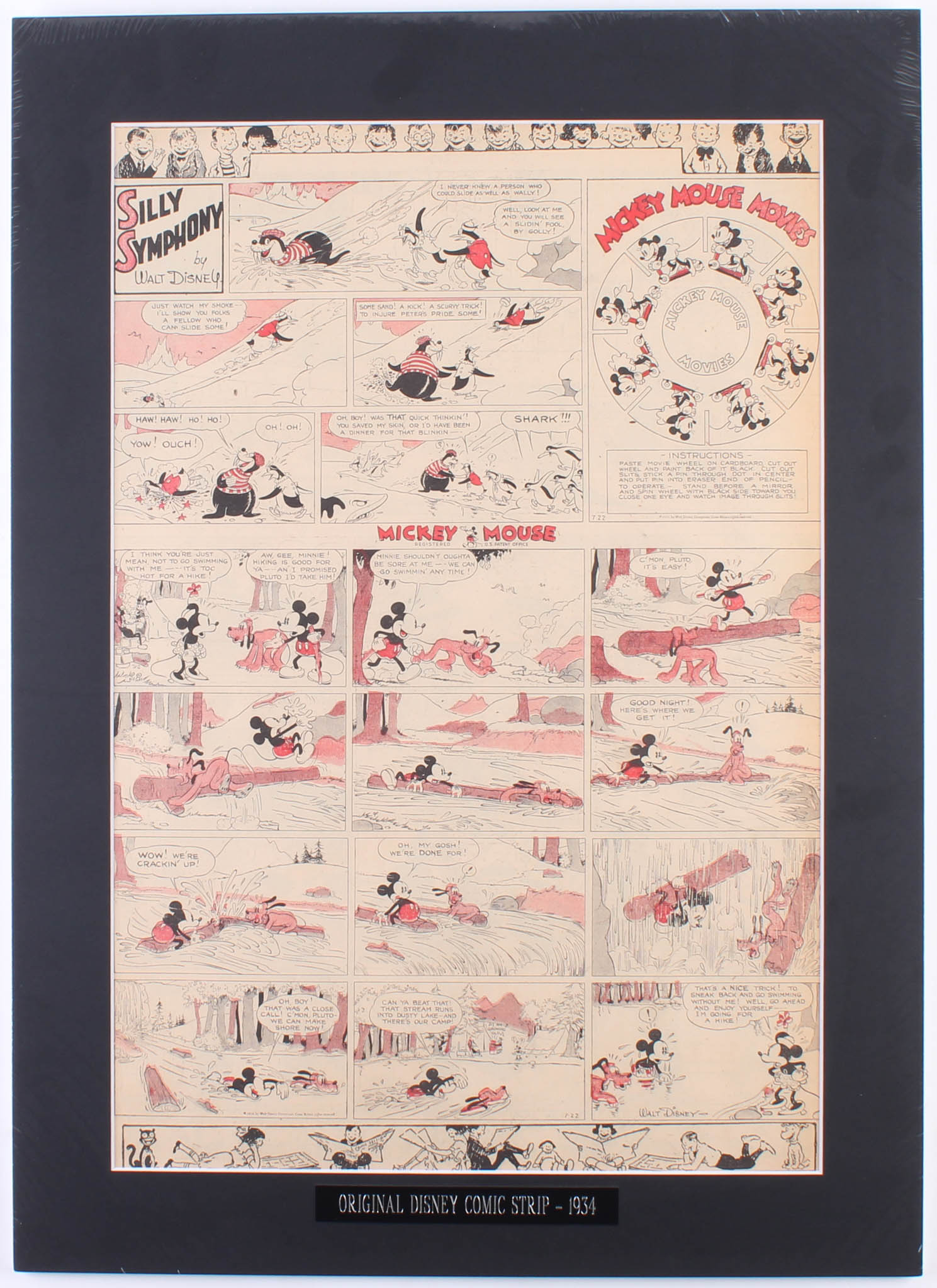 1934 "Silly Symphony" & "Mickey Mouse" 18x25 Custom Matted Original Disney Comic Strip Display