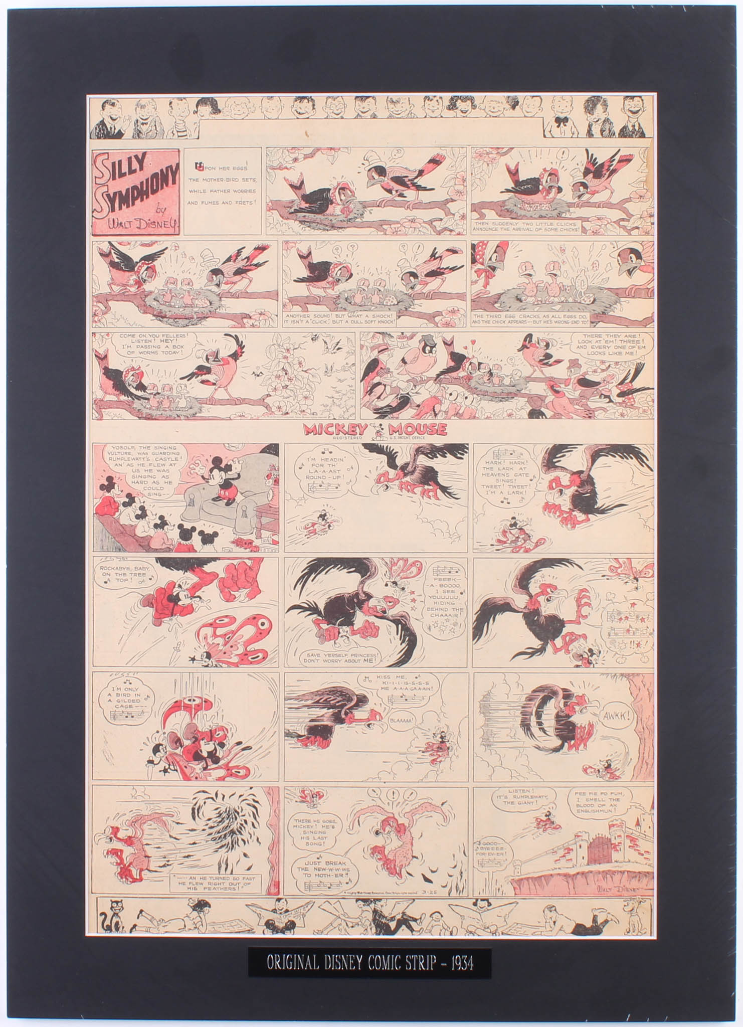 1934 "Silly Symphony" & "Mickey Mouse" 18x25 Custom Matted Original Disney Comic Strip Display