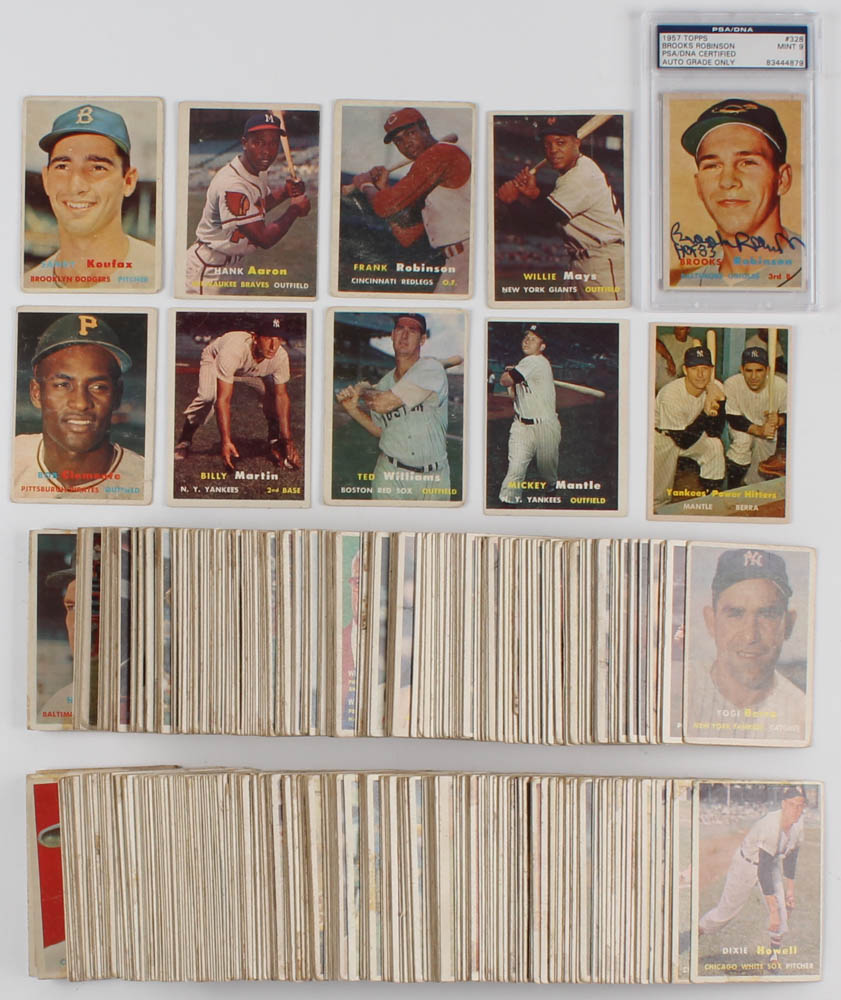 1957 Topps Complete Set of (407) Baseball Cards with Brooks Robinson Signed 1957 Topps #328 RC Inscribed "HOF 83" (PSA Encapsulated)