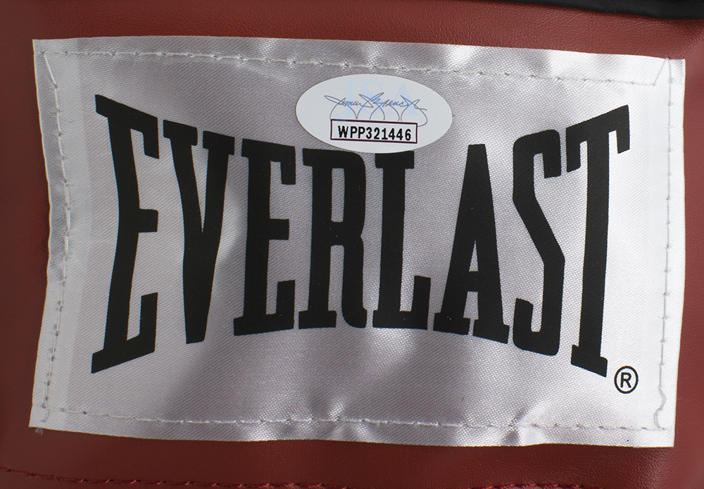 Everlast boxing glove has been hand-signed and inscribed in black felt-tip pen by Earnie Shavers.
