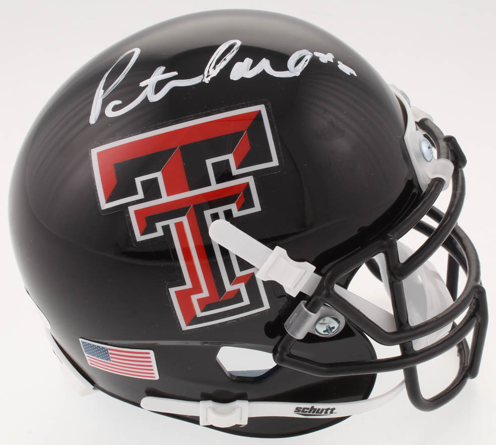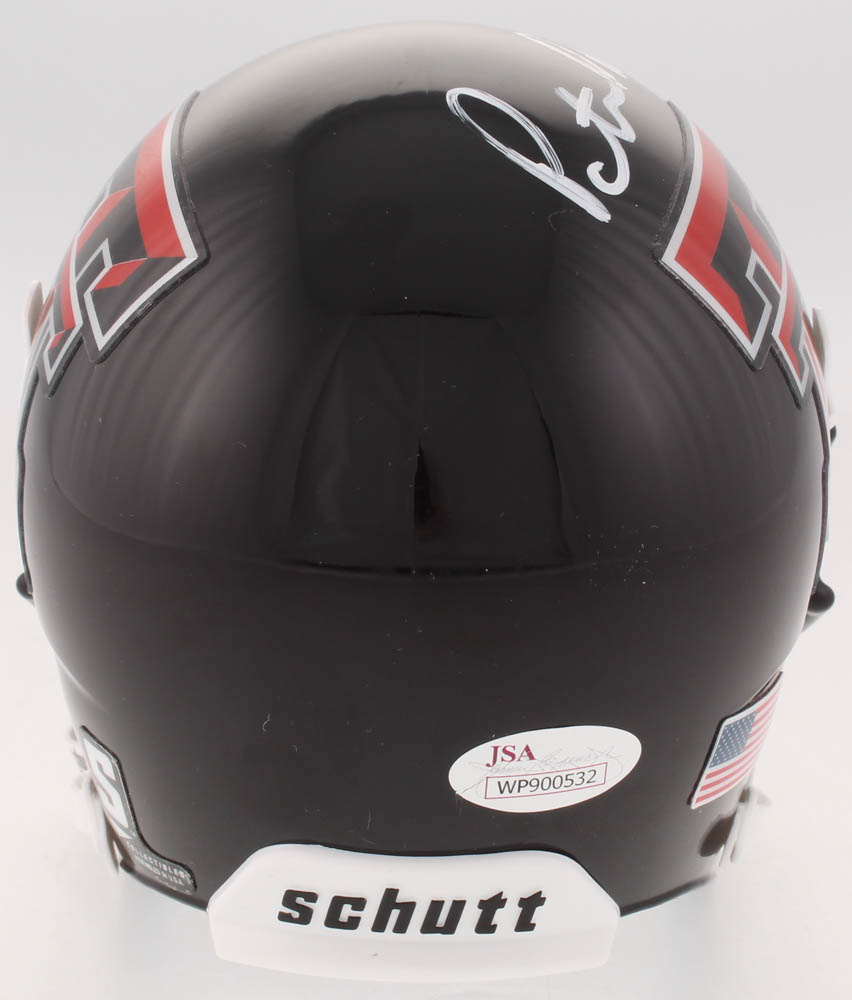 Schutt Texas Tech Red Raiders mini helmet. Hand-signed in white paint pen by Pat Mahomes.
