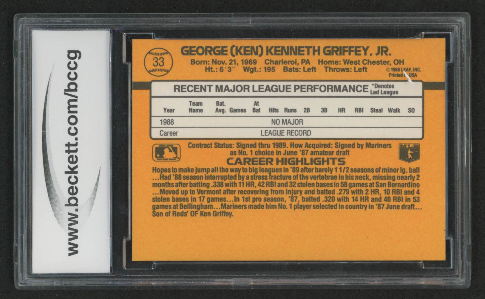 1989 Donruss #33 Ken Griffey Jr. RC (BCCG 10)