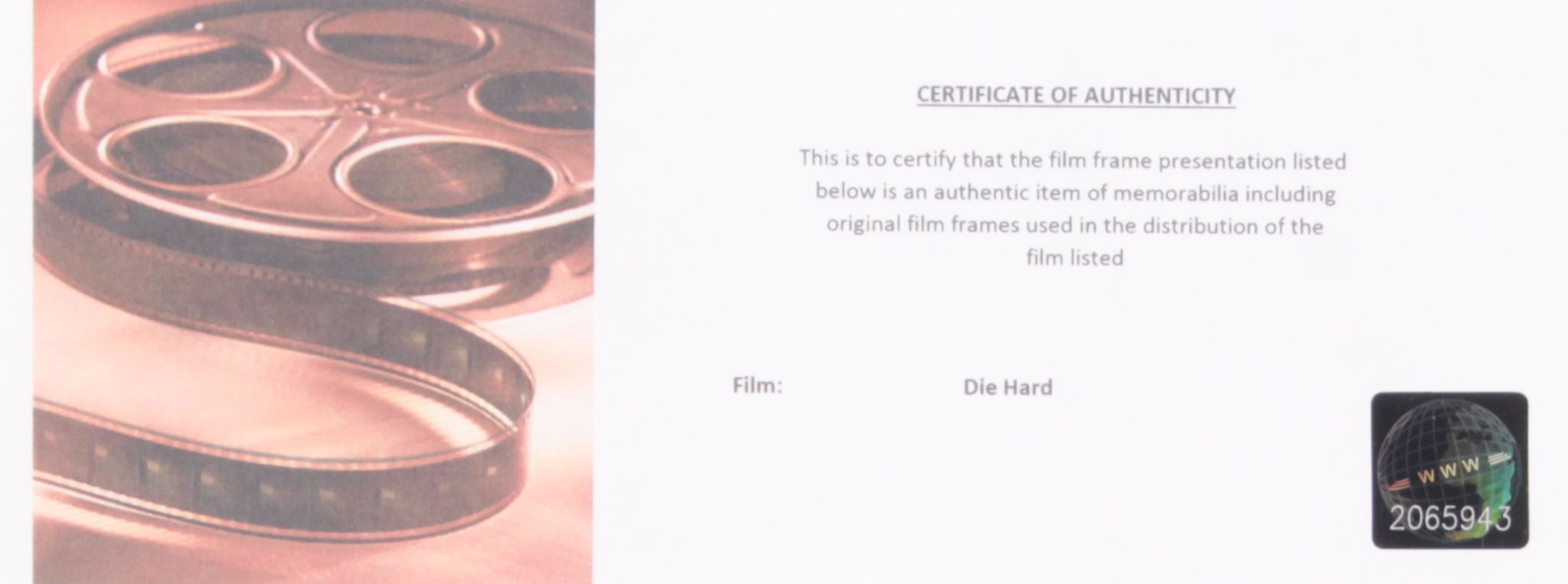 "Die Hard" Limited Edition Original Film / Movie Cell Display