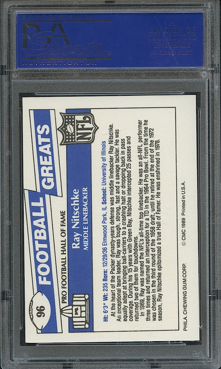 Ray Nitschke Signed Packers 1989 Swell Greats #96 Football Card (PSA Encapsulated)