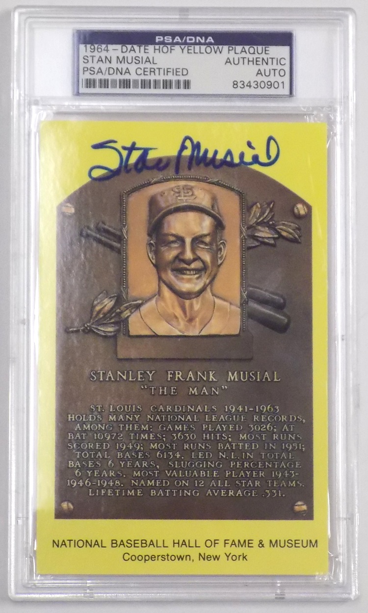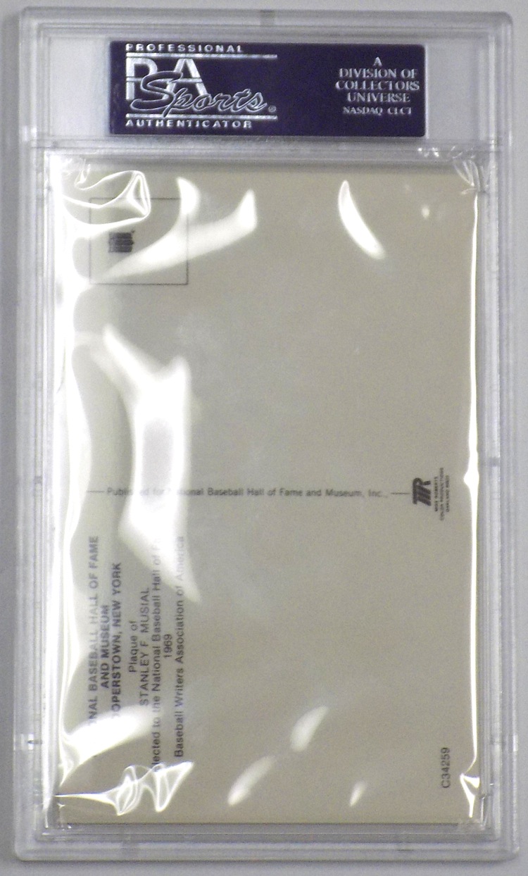 Stan Musial Signed Hall of Fame Plaque Postcard (PSA Encapsulated)