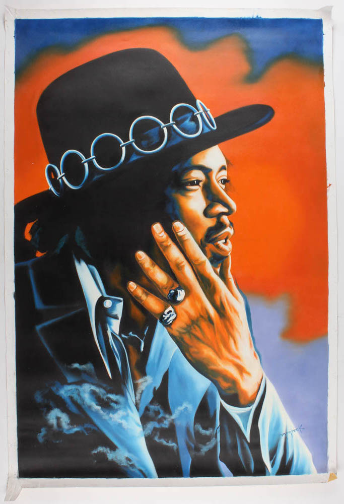 Hector Monroy Signed "Jimi Hendrix" 28.75x41.5 Original Oil Painting on Canvas (PA LOA)