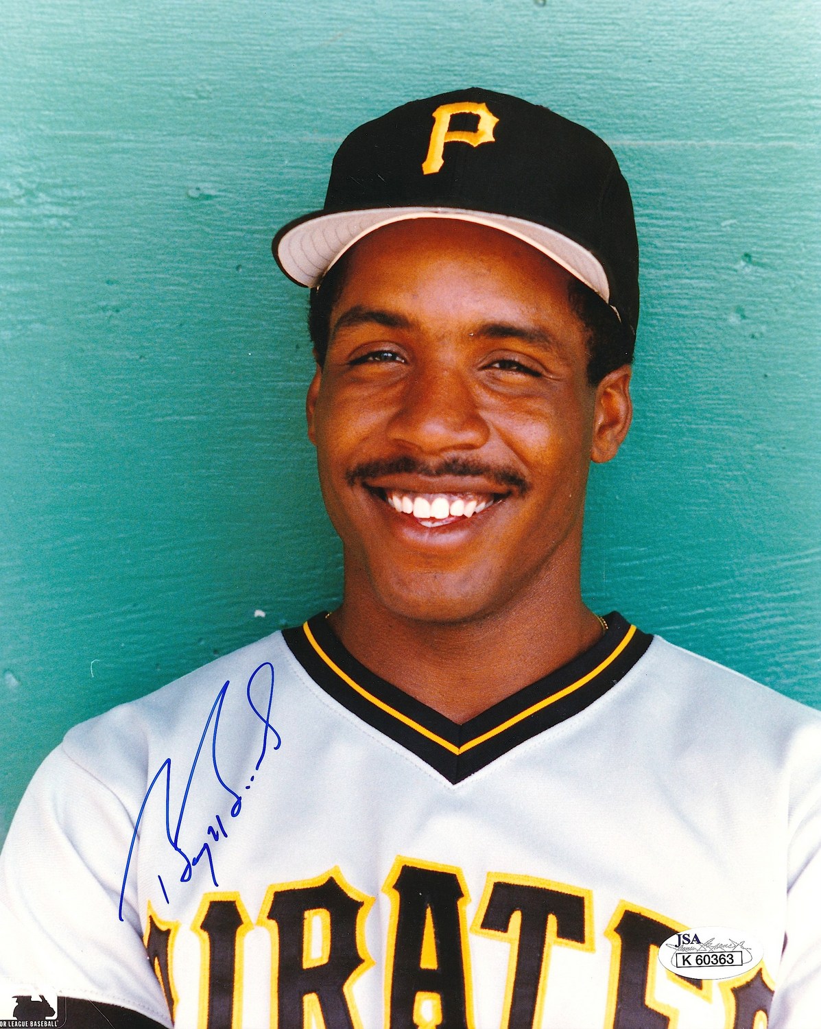 The photo measures 8 " x 10 " in size and has been hand signed in blue felt-tip pen by Barry Bonds (Pirates, Giants). The autograph includes an official James Spence Authentication (JSA) hologram and matching COA for authenticity purposes.