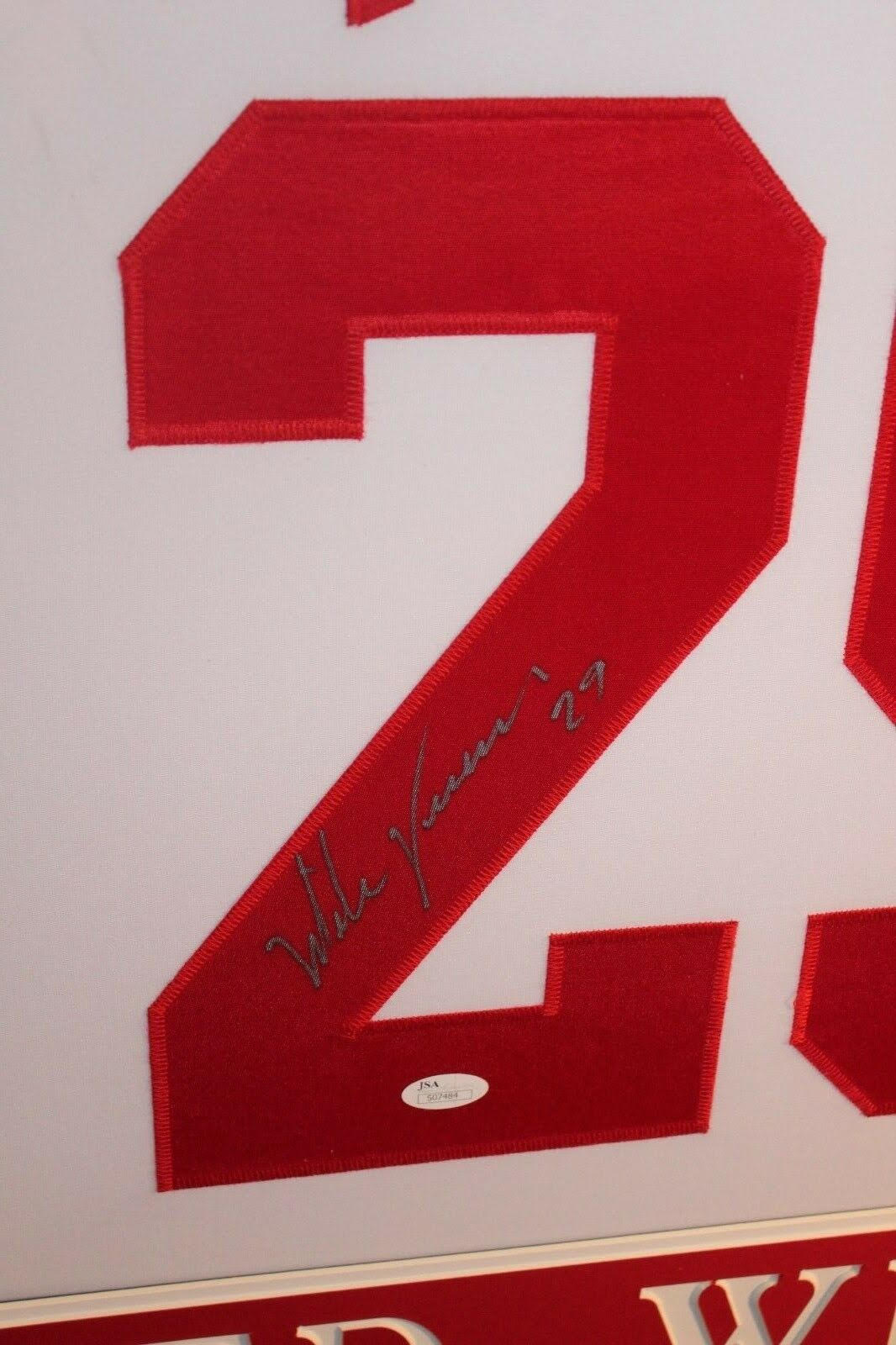 Mike Vernon Signed 35x43 Custom Framed Jersey (JSA COA)
